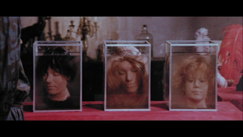 Something Weird unleashed this one back in the '80s on VHS under the Exorcism's Daughter title as part of their "Sexy Shocker from the Vault" series, in a flat letterboxed transfer from a pretty chewed-up theatrical print. The Code Red version carries the title seen on the cover (amusingly spliced in with the audio from the main titles temporarily dropping out, a practice common for retitlings in the '70s), and while it's also inflicted with its fair share of splices and damage, it's at least a marginal step up in terms of detail. Colors look very bland and desaturated, but since we don't really have much else to compare