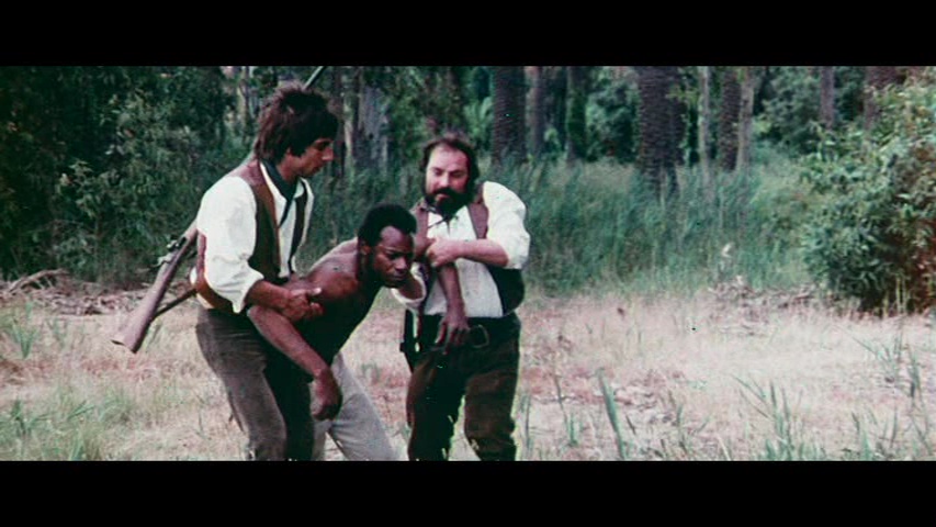 marks. Sharing space on the Blu-ray is a dated SD version of Passion Plantation, a trashy Italian Mandingo cash-in originally released as Emmanuelle bianca e nera (not to be confused with the same year’s Black Emmanuelle, White Emmanuelle with Laura Gemser). Directed by onetime spaghetti western helmer Mario Pinzauti, it was filmed back to back with his similar Mandinga; no bonus points guessing what that one’s copying. The plot here actually bears some similarities to the same year’s Mandingo sequel, Drum, as bratty, "forthright" plantation daughter Emanuelle (Longo) kicks her pathology into overdrive when her betrothed, cattle rancher neighbor Lawrence (Gismondo), starts to get a little too close to her maid, Judith, after she saves him from certain death. Emanuelle isn't restrained about her own love of the plantation's enslaved population, but when Lawrence starts to go all anti-slavery on everyone, that's just a step too far as high melodrama and bizarre antics ensue on the way to a violent finale.