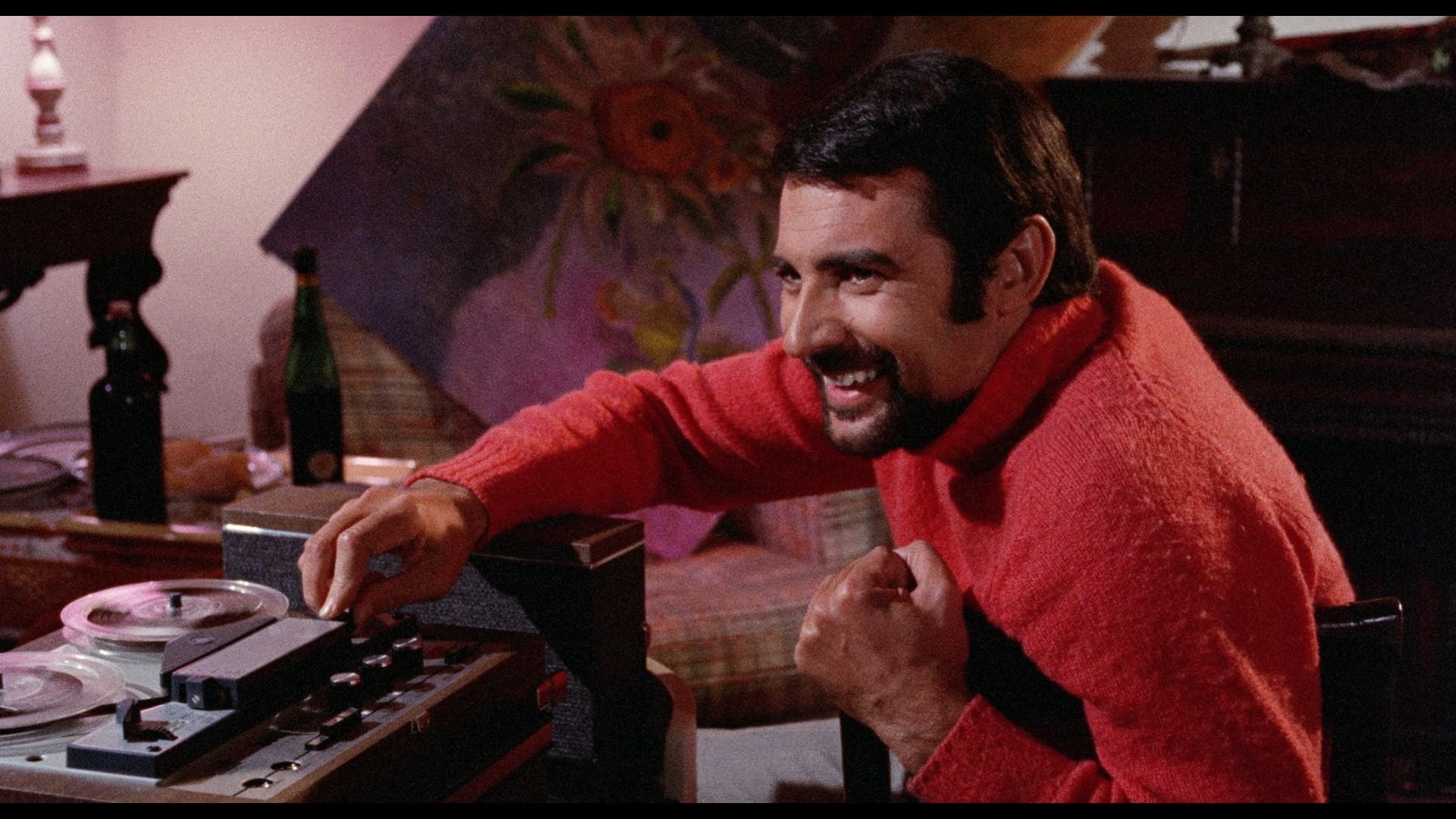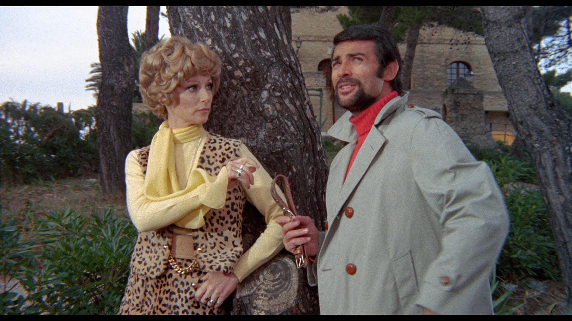 really bursting forth here, and detail is even better so you can savor all the insane wardrobe choices to the fullest. The English and Italian DTS-HD MA 2.0 mono tracks are both included (with optional translated English subtitles) and sound solid with no significant issues. Samm Deighan provides an enjoyable new audio commentary parsing out the way the film handles its peculiar character dynamics, the conventions of the giallo at the time, the ties to other subgenres like poliziotteschi, the contributions required by the film's Italian-Spanish co-production status, the background of the major actors, and the subversive nature of the story structure that can really throw first-time viewers for a loop. The archival Nocturno featurette "In the Folds of Sergio Bergonzelli" (22m3s) from the 2011 Italian DVD offers a portrait of the filmmaker from colleagues Mario Caiano, Corrado Colombo, and Attilio Perillo sharing memories of his key films, his "particular" personality, and some colorful tales from the studio lot. The English and Italian trailers are also included. Updated review on December 26, 2022
