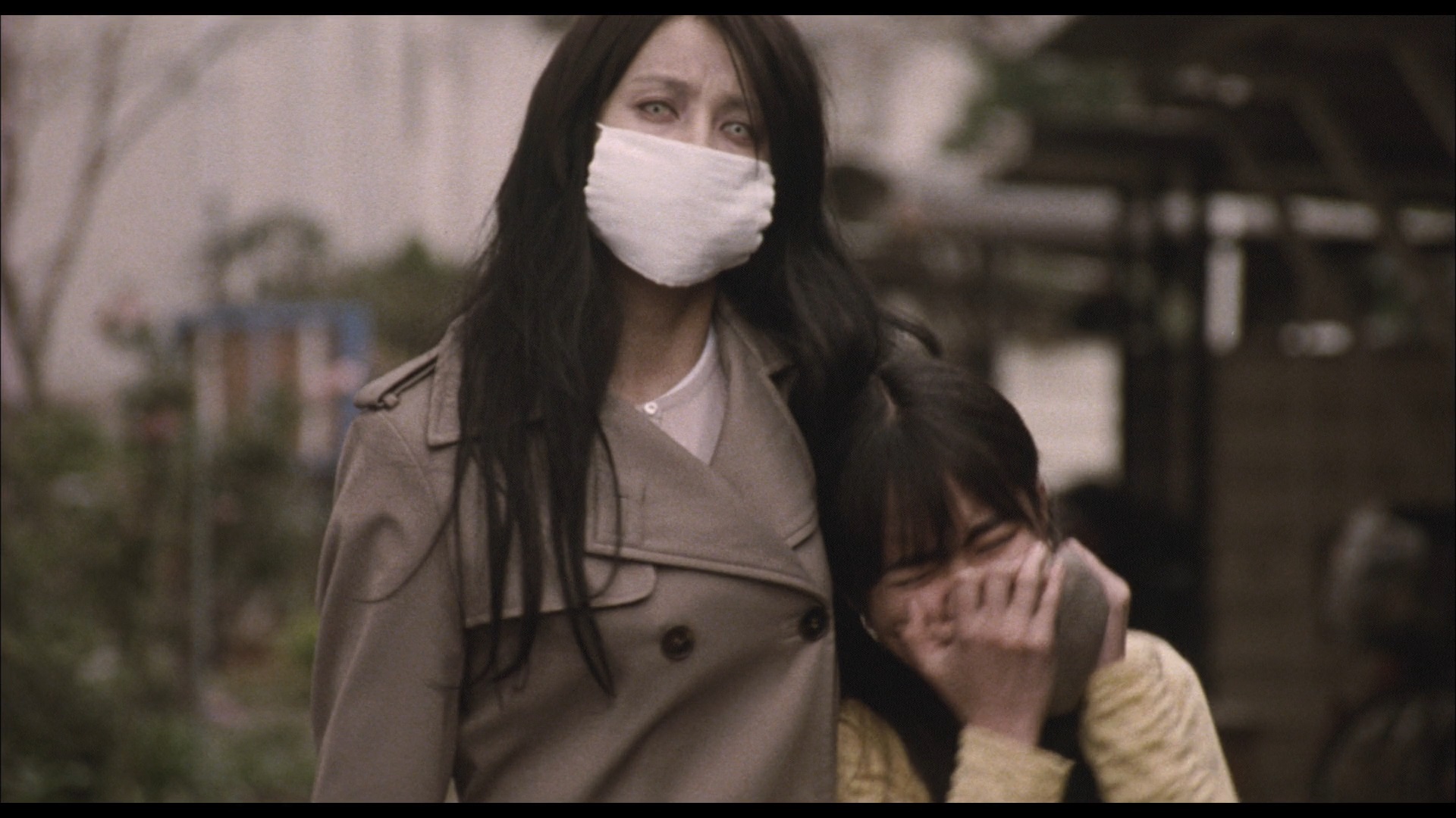also correct the black levels to the intended deep, rich look that's been largely absent before. As with all but one of the other titles in this Blu-ray set, they each have DTS-HD MA 5.1 and 2.0 Japanese mixes with optional English subtitles. Each features a new audio commentary as well; the always reliable Tom Mes does the honors for Shikoku, breaking down its cultural references, the history of the locale, and the film's place in the first wave of J-horror, among other subjects. Then Jasper Sharp and Amber T. join forces for an in-depth and rewarding dive into Isola talking about the earthquake, the merging of psychic and ghost story tropes, connections to other genre films around that time, and the relationship between theatrical and home video audiences. In "The Aftermath" (23m53s), Mes explains how the J-horror boom rose out of the 1990s home video market when Toho dominated the local theatrical market, with horror proving to be an affordable and effective way of tapping into social anxieties and folklore in a way that resonated far and wide. "Something in the Water" (22m54s) is a new interview with Shikoku's Nagasaki about how he approached layering the film's narrative secrets, the decision to shoot on location in the titular location after finding just the right village, and the process of organizing the shoot. Ported over from earlier editions are short archive interviews with Nagasaki (3m47s) and actors Chiaki Kuriyama (2m15s) and Yui Natsukawa (3m34s), while Isola has archive interviews with actors Yoshino Kimura (1m44s) and Yu Kurosawa (1m32s). Then you get some raw production footage of the filming of Shikoku (3m27s) and Isola (2m45s), a trailer for Isola paired with Ring 0, and a Shikoku trailer (paired with Ring 2) and two TV spots plus image galleries for both films.