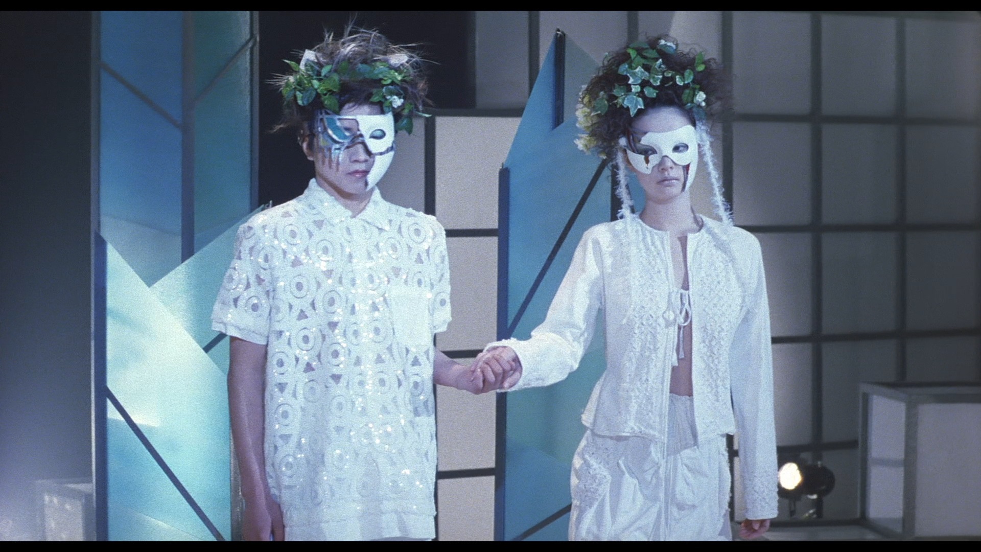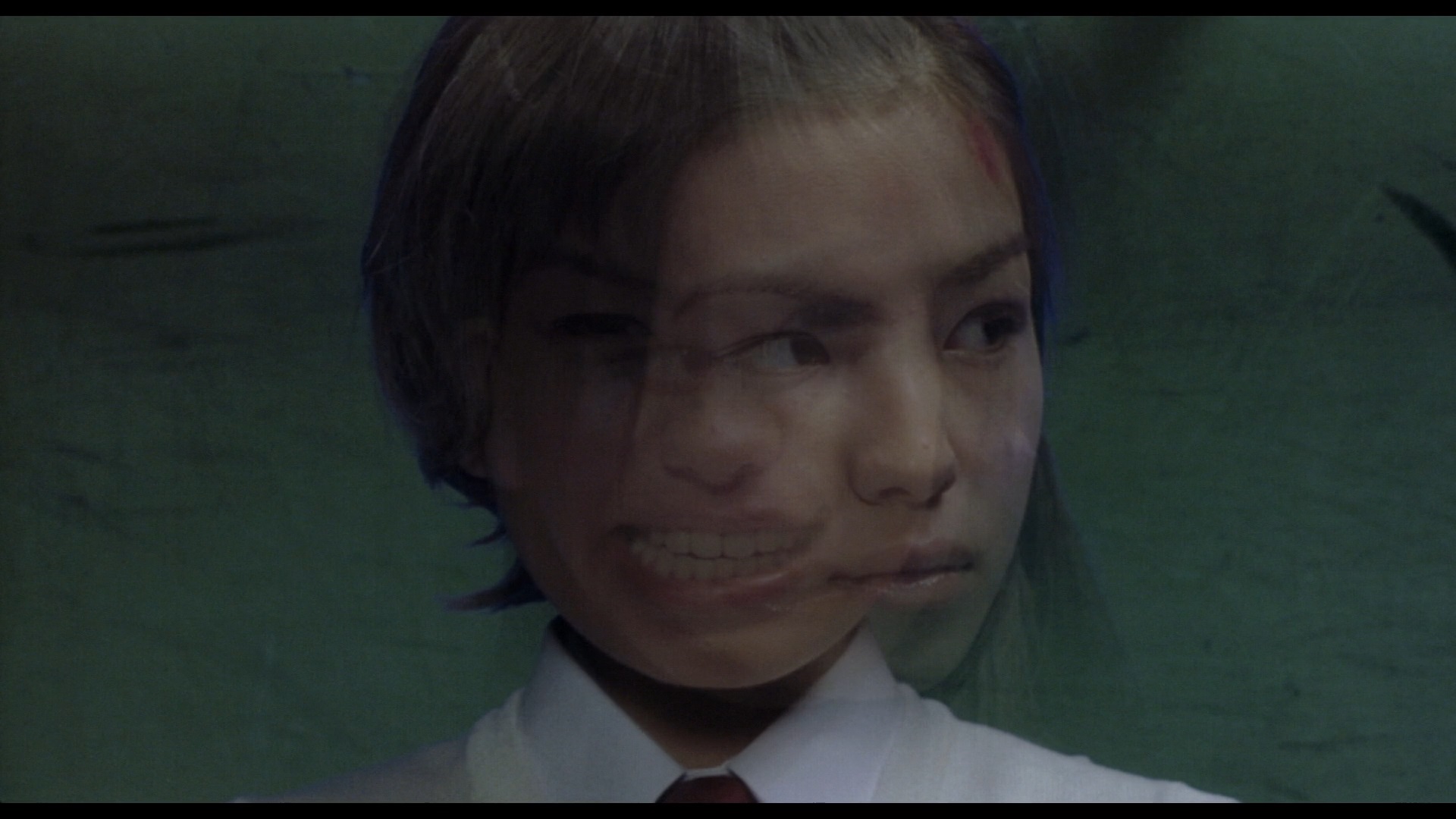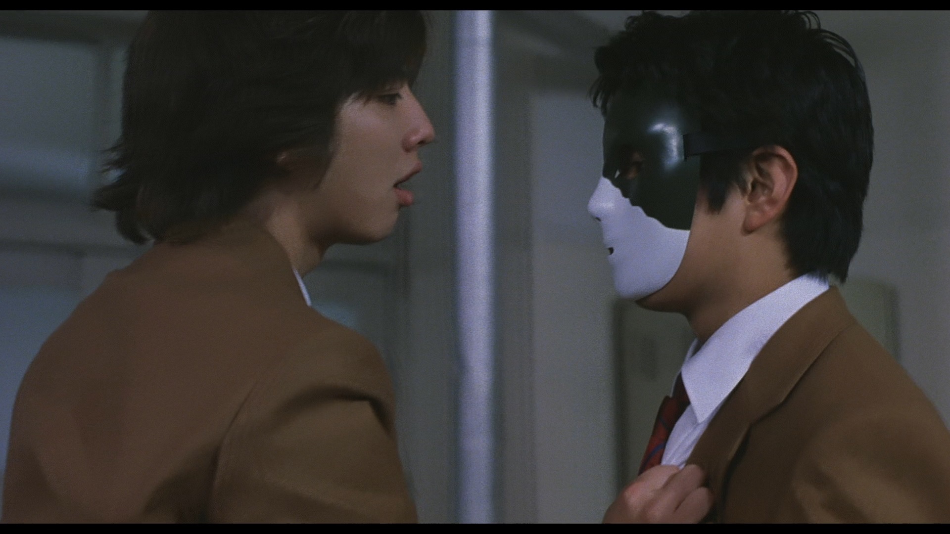with Persona in particular going crazy with colorful lighting and costumes that make it a real joy to watch at times. Carved, which has had an extensive video history including its releases from Tartan at the label's height turning out Japanese genre fare, gets the usual 5.1 and 2.0 options while Persona is the only one with just a 2.0 stereo mix; it's obvious that one was the lowest priority here as it's also the only one without a commentary. On Carved you get a new commentary by Zack Davisson discussing many cultural aspects of the film including classroom setups, the types of police, the background of the story, the folklore aspects (his specialty), and the thousands of yokai throughout Japanese history that have populated scary stories. "Why So Serious?" (18m40s) features Carved director Koji Shiraishi talking about the fame of the source urban legend, his recruiting to make this film, the backstory scene added to avoid the title character seeming ridiculous, and much more. In "Weapon of Choice" (16m56s), Lindsay Nelson focuses on the dual strains of Shiraishi's filmmaking, the role of folklore and ghost stories in his work, and the way this film interprets a familiar story of disfigurement and social peril. "Confessions of a Mask" (17m12s) is a new interview with Persona director Takashi Komatsu covering the mob mentality he wanted to study with the film, his work for Kadokawa, and his thoughts