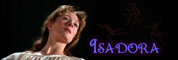 As with most of its other titles from this era (the sorry fates of Games or Eye of the Cat are enough to make a movie fan weep), Isadora has never been a high priority for Universal who has essentially ignored it through the DVD generation. The roadshow version remains unreleased in any format (hopefully it isn't lost completely) while other maligned, late-period roadshow titles like Star! have been restored; one can only hope it will see the light of day at some point, but that will take more care and time than anyone seems willing to invest at the moment. In the meantime the film has at least been released at last on DVD in a very nice-looking edition from Odeon in the UK; it's infinitely superior to the VHS release, with beautifully vivid colors and more satisfying framing. The version used here is the general release cut of 134 minutes, which varies from the video director's cut in a number of respects; for example, in the DVD version the Universal logo suddenly appears after little Isadora's opening ritual, a wild touch that actually works really well. The mono audio sounds very clear and does justice to the powerful score by Maurice Jarre, which also incorporates a number of classical pieces as well as the standard "Bye Bye Blackbird" (a piece later referenced ironically in Ken Russell's The Devils, while Russell nudged Duncan again several times in his underrated film of The Boy Friend). The two-disc set includes some solid extras as well, starting with an 11-minute segment from the '60s British TV show Aquarius about the dancer's life. Also included on disc one are a stills gallery and the sole, extremely fleeting instance of Duncan preserved on film, alas largely obscured by a tree. Disc two features the entire 107-minute performance of Isadora, the Royal Ballet's production based around her dance style and the art nouveau movement which is often associated with her. For anyone curious about one of the late '60s' most inexplicably forgotten and audacious studio films, this is certainly a worthwhile introduction that will hopefully lead to enough interest to justify a full-scale restoration somewhere down the road.