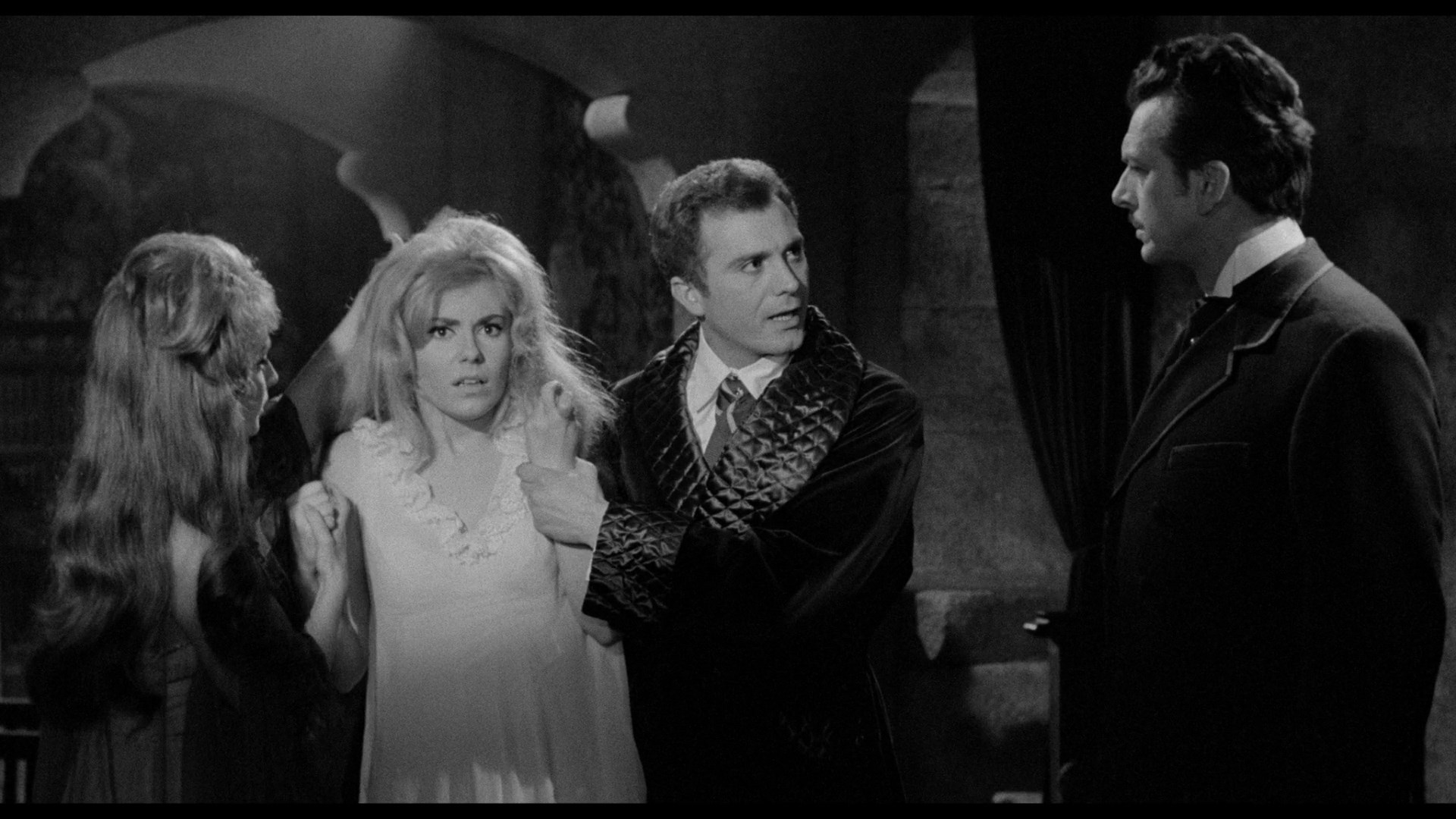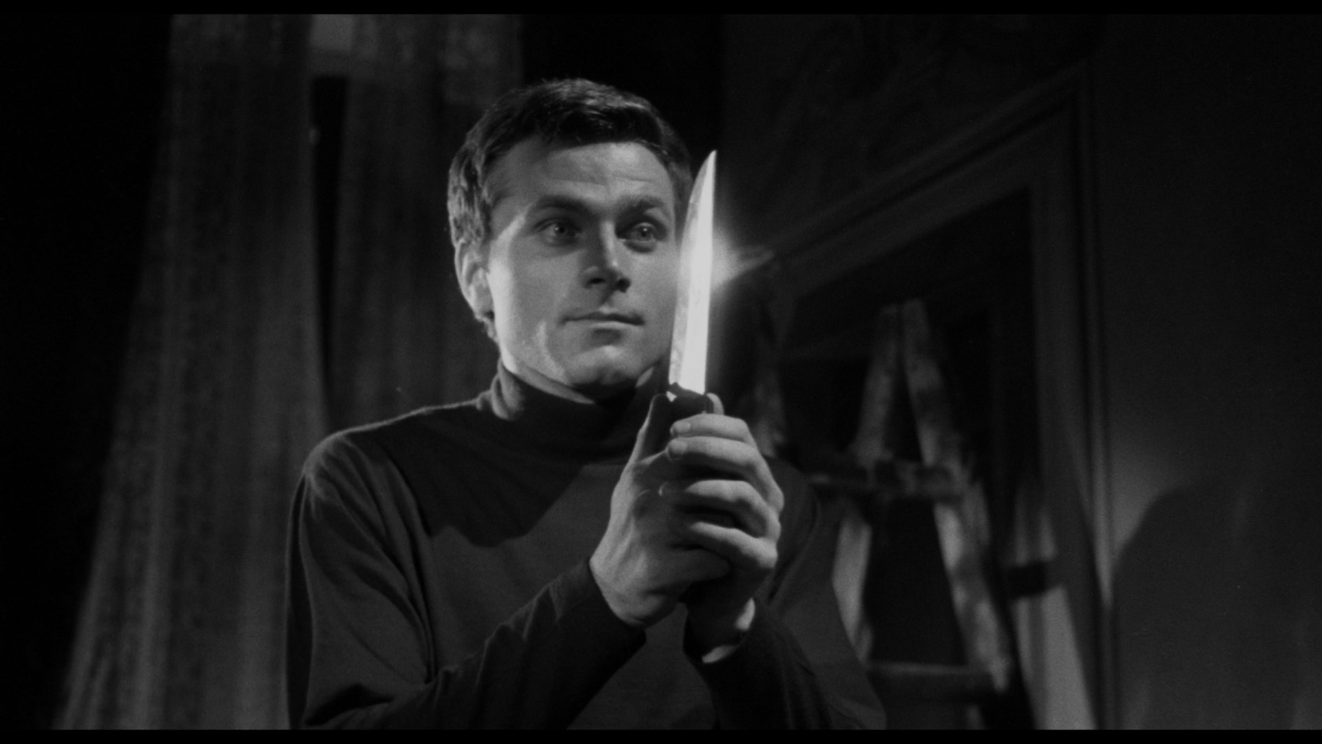 Previously available only on European DVD without English options, The Third Eye sparkles on Blu-ray here and comes with a major bonus: the elusive The Third EyeEnglish track, which is quite well done and very welcome here in addition to the usual Italian audio. The film only has Italian title The Third Eyesequences though, so it's still undetermined whether English ones were prepared for possible export. Again there are some interesting variations in meaning between the two versions and both are equally valid, so it's worth sitting through twice. A superb and very thorough new commentary by Rachael Nisbet is jammed with great insights and tidbits about the film from start to finish, juggling observations about director Mino Guerrini's aesthetic choices, background about the creation of the script including its nonexistent literary source, the Hitchcock influences, and the psychological ramifications of the characterizations. Ashworth turns up again for "The Cold Kiss of Death" (6m15s), which starts by claiming this was never dubbed in English (oops) and provides some trivia about the production personnel and observations about the grimy subject matter versus the elegant visuals. In "Nostalgia Becomes Necrophilia" (12m), Lindsay Hallam studies the film's visual scheme as an extension of the melodramatic and Gothic conventions in the story, while "All Eyes on Erika" (15m40s) finds Blanc returning to chat about one of her final black-and-white roles, her career in the mid-'60s, the experience of playing a dual role, and her memories of Nero. A gallery of five images is also included.