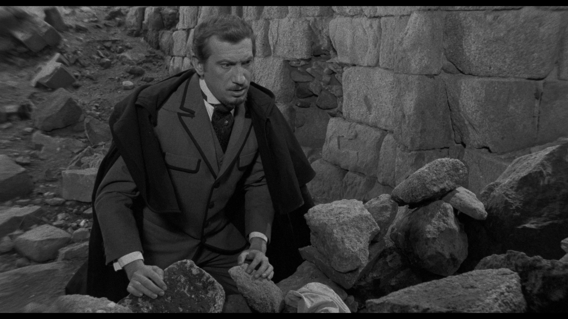 Total hokum complete with some bizarre hypnosis plot turns and a finale straight out of Scooby-Doo, The Blancheville Monster starts at full throttle with a massive nocturnal thunderstorm, a spooky castle, and a frenetic orchestra, and it rarely lets up after that. Carriages, endless harpsichord playing, a premature burial, and other amusements abound, and it's best if you don't try to scrutinize the plot too much along the way. This one's been a stalwart of PD editions over the years from labels like Mill Creek and Retromedia, none really worth the trouble, and the Arrow offers a very classy presentation that fascinatingly includes both the Italian and English versions (with their respective language tracks and title sequences) with English translated or English SDH subtitles. Both are worth a look as they're radically The Blancheville Monsterdifferent throughout; the dialogue for the English dub was considerably overhauled almost line for line, and even the general location is changed (Brittany in the English dub, somewhere in Scotland in the Italian). A new commentary by Paul Anthony Nelson is spirited fun as he comments about how this film is a bit "rough around The Blancheville Monsterthe edges" due to its relatively green director (who vocally dismissed it later) and early status in the Gothic sweepstakes, then points out all the Poe references, the amusing resemblance of Leo Anchóriz's performance (as the ambiguous family doctor) to Vincent Price, the echoes of Rebecca's Mrs. Danvers in Liné's character, and tons more. In "Castle of Horror" (6m49s), Ashworth provides another video intro noting the influence of Corman's The Fall of the House of Usher and The Premature Burial. "Are You Sure It Wasn't Just Your Imagination?" (20m54s) is a new video essay by Keith Allison examining how the film and its Poe-Corman influence sprang from the 1957 arrival of Hammer horror and the horror tropes it manipulates while running parallel with other European genre productions. Finally in "Welcome to the Manor" (13m55s), Antonio Tentori focuses on contextualizing this film within De Martino's career and as part of the Italian fantastic cinema wave at large. Also included are the 3m11 American title sequence (pulled from a VHS source), the really wild William Castle-style Italian trailer, and a three-image gallery.