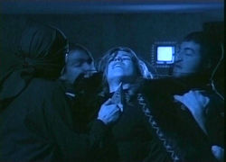 As with most of Franco's other "commercial" projects like Faceless and Count Dracula, this is one odd mongrel of a movie. While Franco peppers the beginning with a gratuitous towel-draped girl-on-girl encounter and some mild bloodshed, his trademark mania doesn't really kick in until the always reliable Lina shows her stuff during the torture and blackmail sequences. From that point Blind Target is low rent, guilty fun, with a thoroughly ludicrous climax packed with awkward gunfire and flying feet. The hyperactive digital editing effects which cluttered some of his other recent work are thankfully kept in check here, but the sound editing is still touch and go at best; Sheppard's disorienting delivery in particular ranges from her almost indecipherable on-set voice to dubbed dialogue seemingly recorded by two different performers. Perhaps it's Franco's Bunuelian ploy to underscore the duality of Maria's personality... or maybe not.