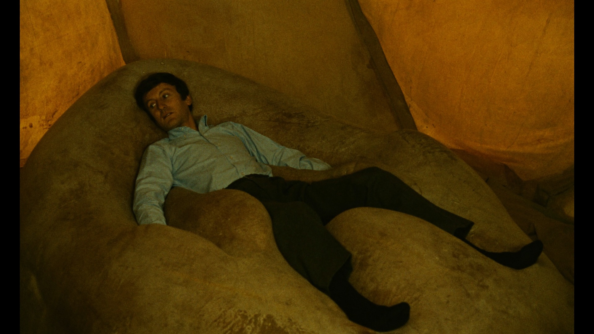 In 2025, Radiance announced its own U.K. Blu-ray release of the film that obviously raised the question of how it would given that the label went the extra mile of already fixing the deeply botched French master they were given for Litan. Thankfully they've done it again here, draining out that horrendous teal tint and restoring the shades of white and red (not to mention actual flesh tones) that were obliterated before. It's still a cool-looking film, but this is much closer to how it should be. Here you get a French 1.0 PCM mono track with optional English subtitles, and all three featurettes from the U.S. disc are ported over here. Featuring a limited edition booklet with an essay by Catherine Whatley, the Radiance disc also adds two substantial new extras starting with an interview with critic and David Jenkins (12m46s) about the film's influence (particularly on Eternal Sunshine), the unconventional use of music by Krzysztof Penderecki, the construction of the fragmented story, the lo-fi nature of the approach to sci-fi, and his esteem for the end result. Finally, In the Ears of Alain Resnais (54m31s) is a 2020 documentary by Geraldine Boudot featuring collaborators and critics including Resnais, actor Lambert Wilson, writer and actress Agnés Jaoui, critic Michel Ciment, Thierry Jousse, Thomas, and others covering the director's aesthetic approach with a focus on the role of music and sound in his storytelling.
