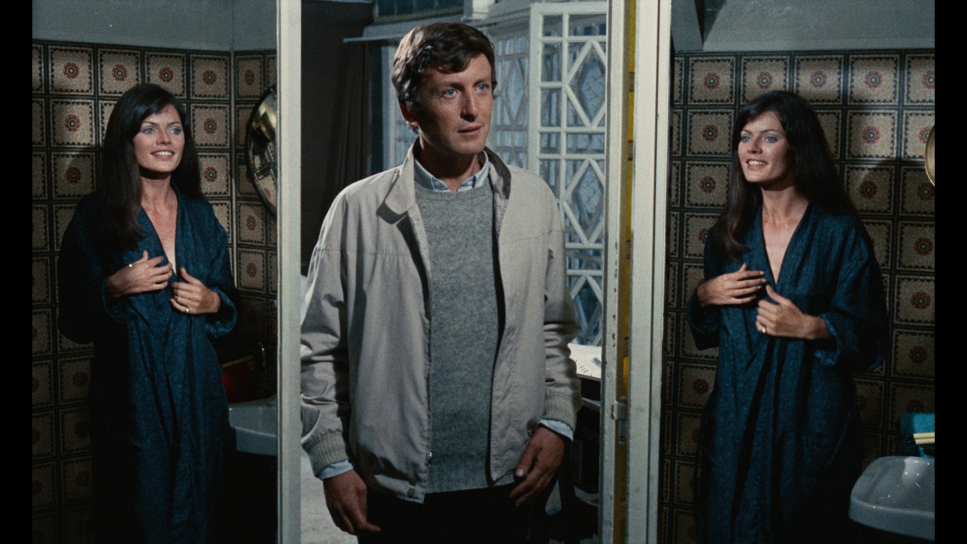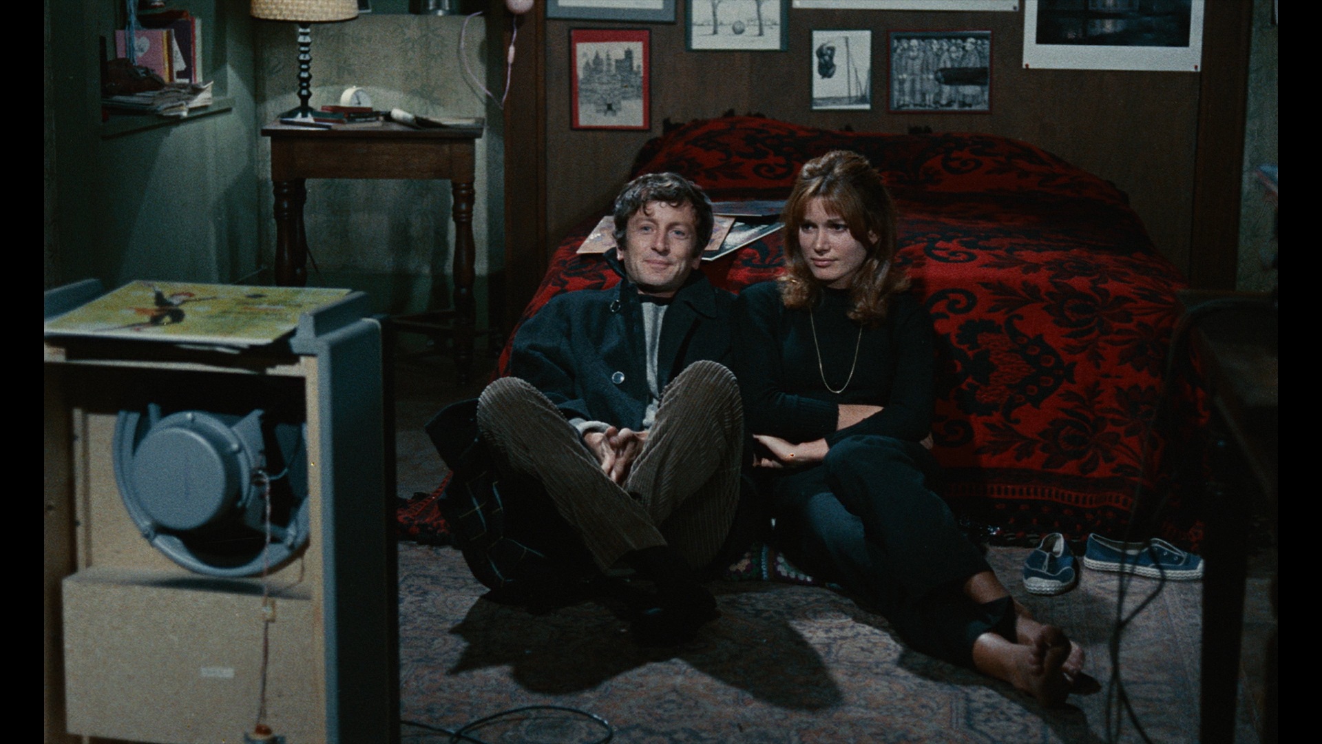 Despite its box office failure, Resnais' film built up something of a cult following over the years that grew considerably when it had a U.S. theatrical reissue in 2014 following by a Blu-ray edition the following year from Kino Lorber (now discontinued now) featuring a booklet with an essay by Jonathan Rosenbaum. Unfortunately that restoration by Eclair, which ended up being absorbed by the equally dreaded and color-blind L'Immagine Ritrovata, was a teal-soaked disaster that sabotaged the entire visual scheme of the film and made it a complete eyesore to endure. The Kino disc featured that presentation as is with a DTS-HD MA 2.0 French mono track with English subtitles, plus extras including a trailer and an audio interview with Alain Resnais (12m43s) ported over from a 2007 French DVD release (now subtitled) about the origins of the story and the harmonious screenwriting process in Brussels, the tenacious nature of his producers, the essential casting of Rich, and the "SOS" theme he wanted that starts in the opening credits. An interview with Claude Rich (15m45s), also from the 2007 DVD, covers his perspective on this as his favorite of his work, his eagerness to work with Resnais, and the nature of maintaining his perspective as a character in unusual ways throughout the film. Finally "The Meeting of Alain Resnais and Jacques
