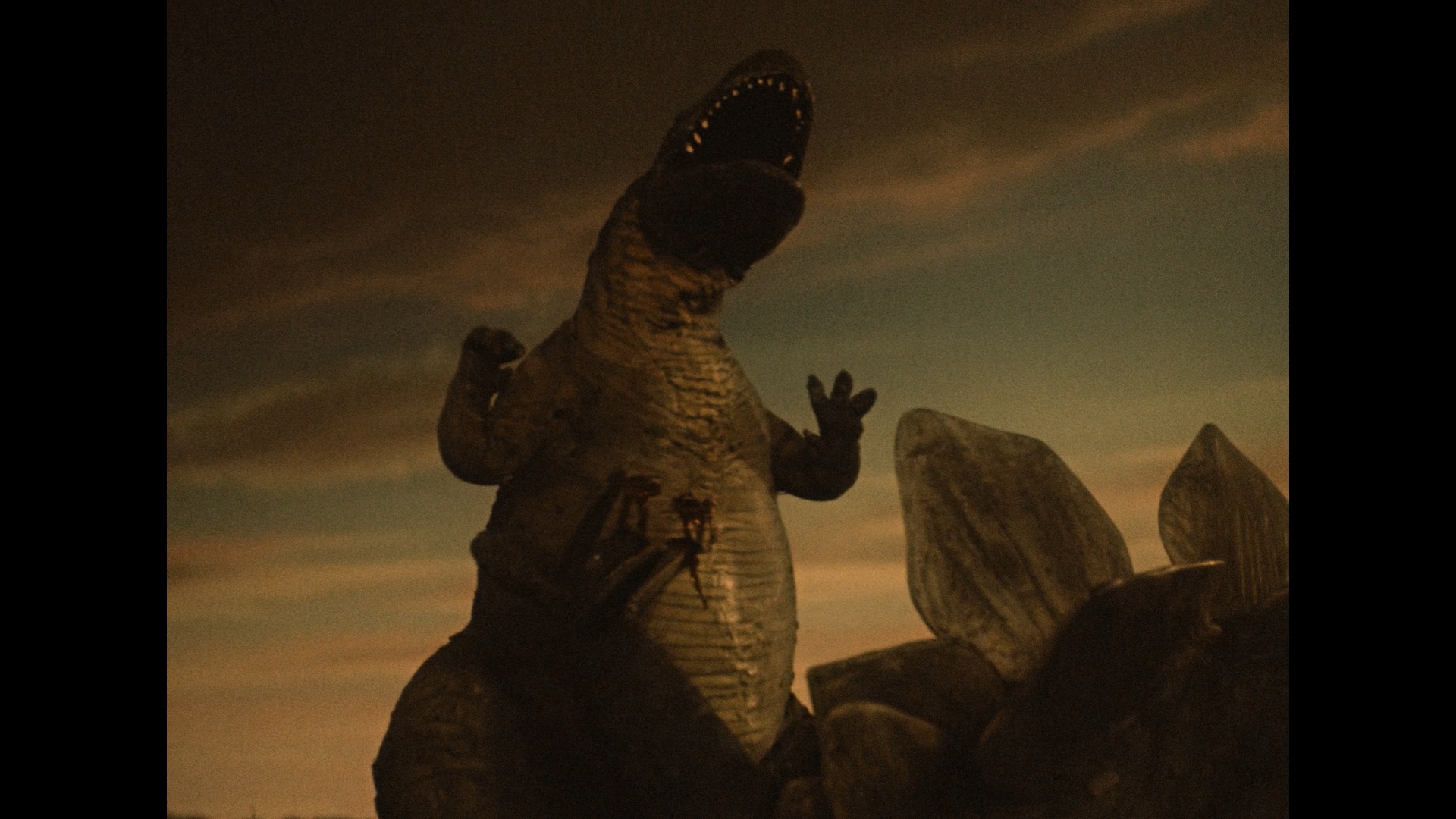 VHS source; it's still the best option we've had by far though to this point and worth watching for historical value. A new video appreciation by Kung-Fu Panda and Sherlock Gnomes director John Stevenson (22m59s) will also increase your appreciation for this film as he explains some of the simple but unique techniques of the film, particularly those tricky shots that show dinosaurs and the rafting boys moving around in the same shot. Ported over from the DVD is "The Making of Journey to the Beginning of Time" (9m8s) covering the sometimes shockingly threadbare nature of the production, complete with a visit to the pastoral locations where the film was actually shot and a CGI recreation of how some of the wizardry was achieved. "Restoring the World of Fantasy" (2m10s), also from the DVD, is a before and after look at the work done on the film to get it back into pristine shape, and the disc wraps up with an image gallery (68 shots including lobby cards, museum promo pieces, posters, and other material), a restoration trailer, the lo-res U.S. trailer, and a promo for the Karel Zeman Museum. Also included is a booklet featuring new liner notes by the always knowledgeable Michael Brooke, who puts the film in context within Czech cinema at the time, the nascent period of Zeman's career, and the state of Eastern European genre filmmaking at the time. Don't miss this one!