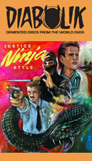 Barely circulated on VHS by local production outfit Cobra Productions, Justice Ninja Style joins the ranks of shot-on-video '80s actioners reinvigorated on Blu-ray, this time in a double-disc(!) deluxe edition from VHSHitfest. The main feature looks extremely good for an SD production, upscaling pretty well here without any tape damage or other tech issues in sight. The DTS-HD MA 2.0 English mono track is also in good shape and features optional English SDH subtitles. The film also comes with a very amusing new commentary by DeSoto natives Cody Terry and Steven Francis, who talk about the big commotion caused by the production when the St. Louis filmmakers came to town. They have a lot of fun pointing out the various actors and locations while also noting the film's attempts to ride the wave of ninja mania exemplified at the time by the likes of Sho Kosugi. An alternate extended cut of the film, Ninja The Ultimate Warrior, is also included here from an inferior, darker tape master, but it's nice to have for the sake of completeness. It's technically much rougher and takes forever to get moving thanks to a long, long prologue shot later in 1989, so make sure you watch the Justice Ninja Style cut first. "The Ninja Speaks: The Story of Ron D. White" (58m31s) answers the burning question of who the enigmatic "Supreme Master, 10th Dan" is who's credited with playing the ninja and co-writing the