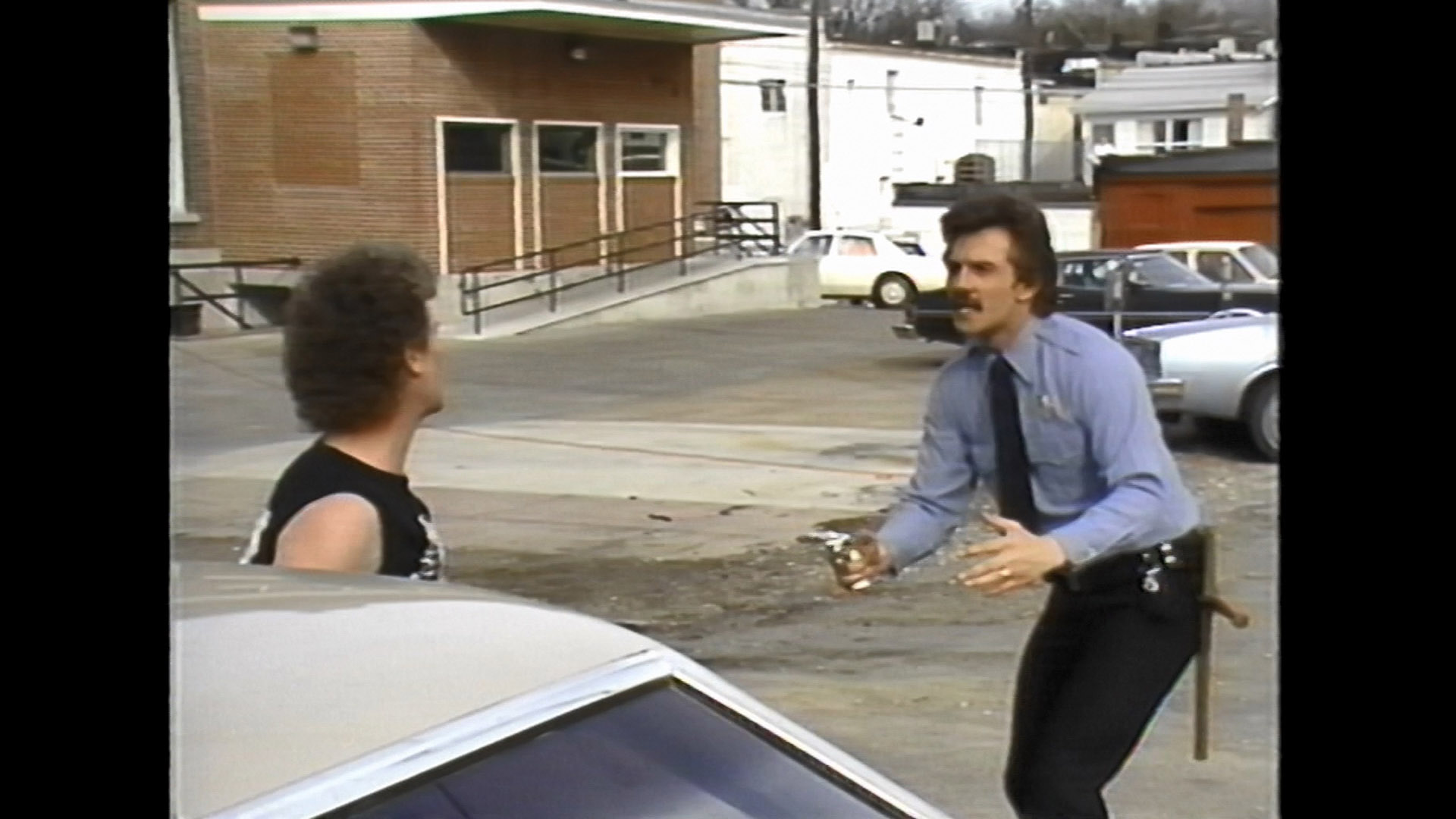 But wait! You say you want to see that entire How To Become a Ninja video and learn how to dress in black from head to toe so you can fight people in your own backyard? Look no further than the second Blu-ray, which features the whole 60m43s opus with White showing how to disguise yourself, lay out weapons across your lawn, and avoid injury as you go about your stealthy mission. Then you get a 1m44s TV news segment on the making of Justice Ninja Style, a batch of 1989 raw footage from the Ninja The Ultimate Warrior shoot (37m8s), a "Six Flags Ninja Media Day" celebration with White at the opening of the Ninja rollercoaster (42m44s), and a very hefty 17m21s image gallery with lots of production photos. Dig a tad further and you might also stumble on 1993's "A Really Good Rocker: The Making of the Music Video" (29m34s), featuring Rykart and fight choreography by White. If you ever wanted country line dancing and bar fight choreography from a Grand Master all in the same place, look no further.