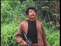 There’s not much plot here to get in the way of the almost nonstop barrage of fight scenes, chase scenes, and elephant crushing scenes, but the gist of it involves a larcenous mercenary (Tears of the Black Tiger’s Metanee) who must turn to his best friend, now a cop (who had to chase him down in the opening scene), when his pregnant wife is abducted by a vicious jungle crime lord/aspiring general. After several hand-to-hand showdowns and other random drive-in mayhem, they make a final stand by driving a bunch of elephants into the bad guys’ compound, smashing lots of jeeps and huts in the process. The thread of a plot is further obscured by the ludicrous English dub, which ranks up there with For Your Height