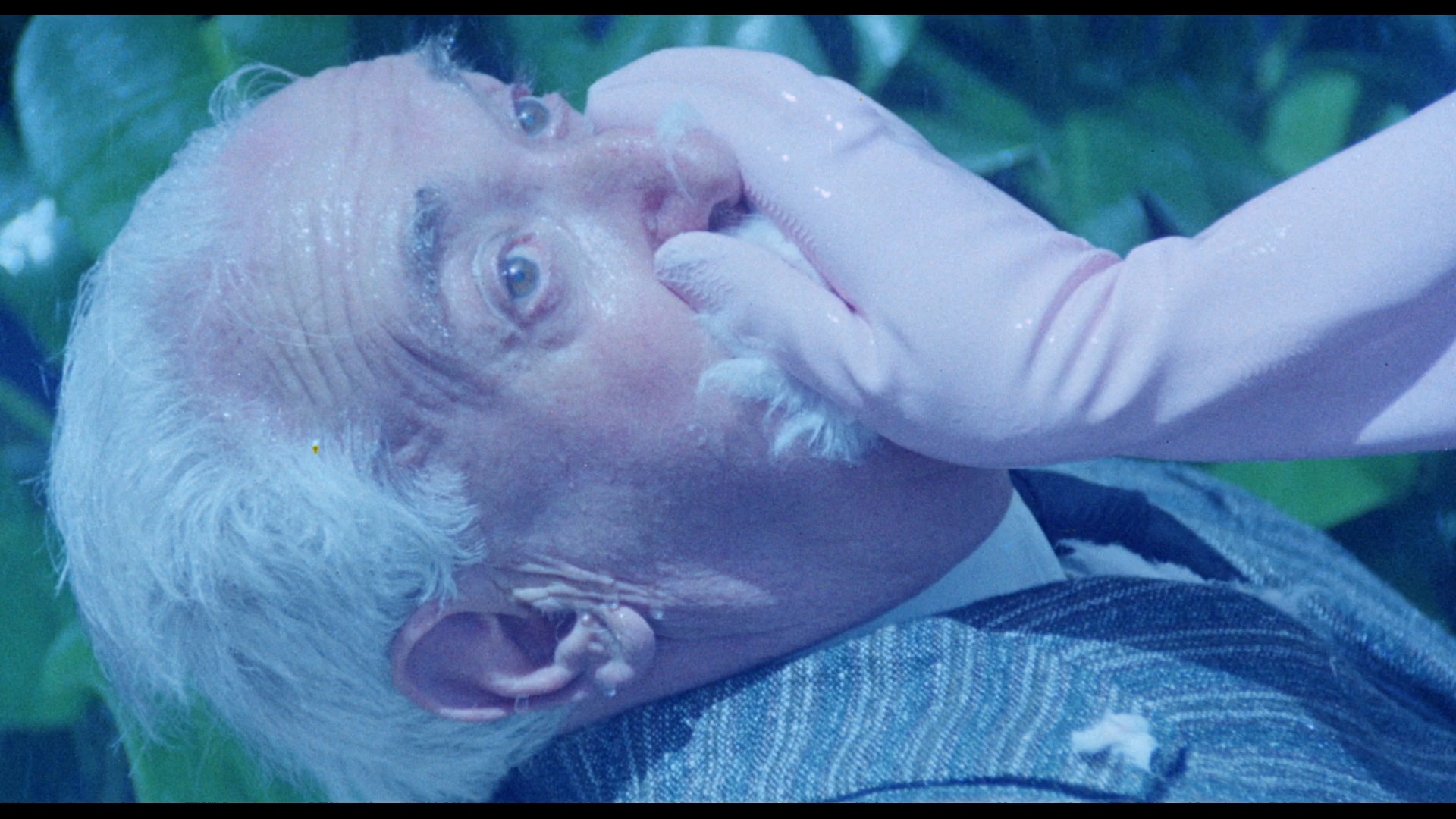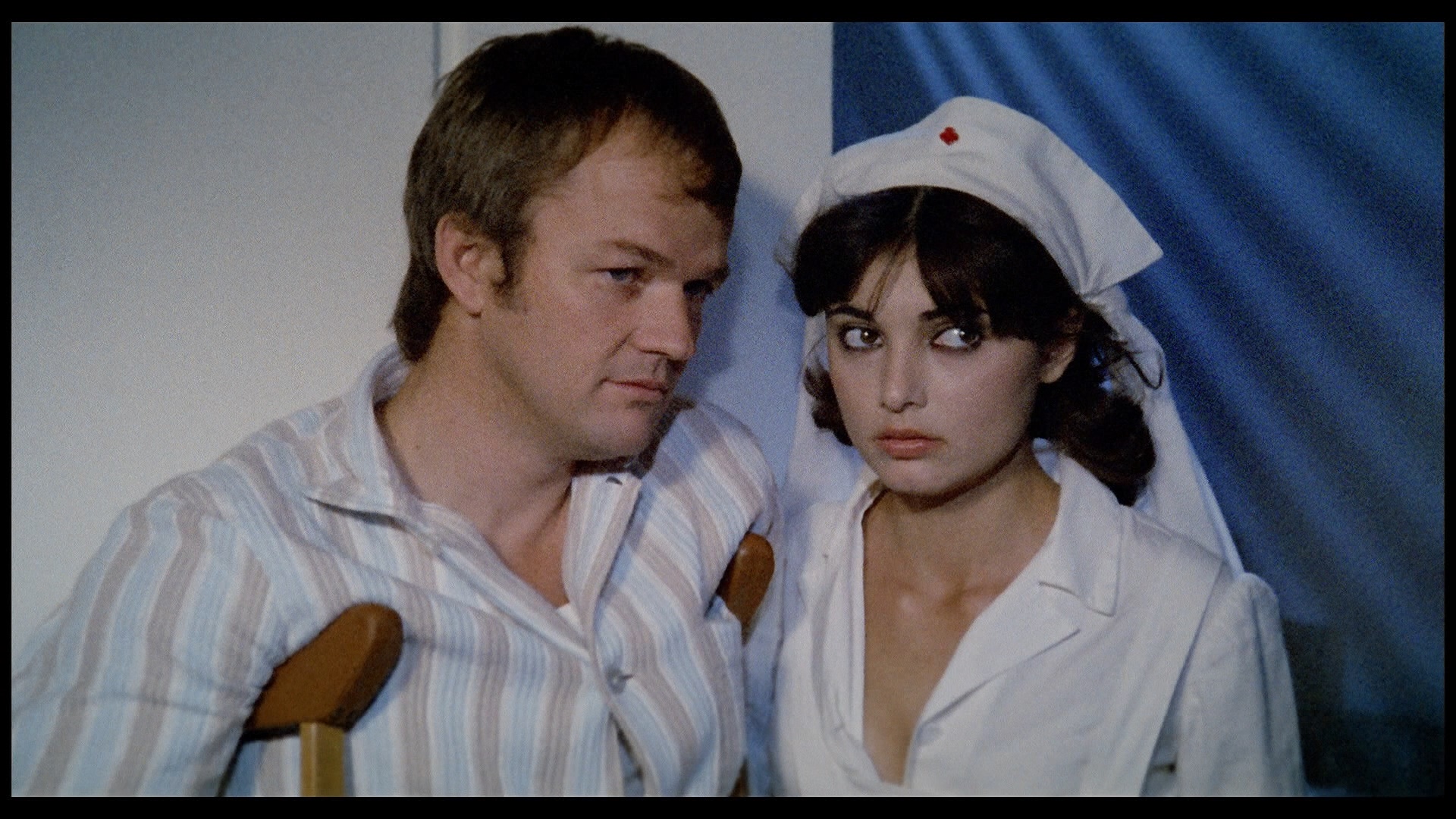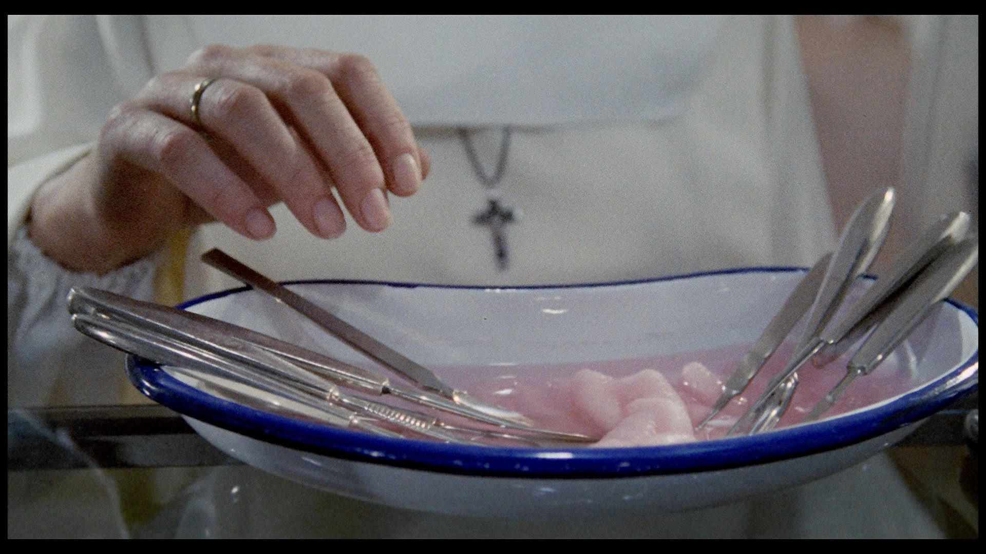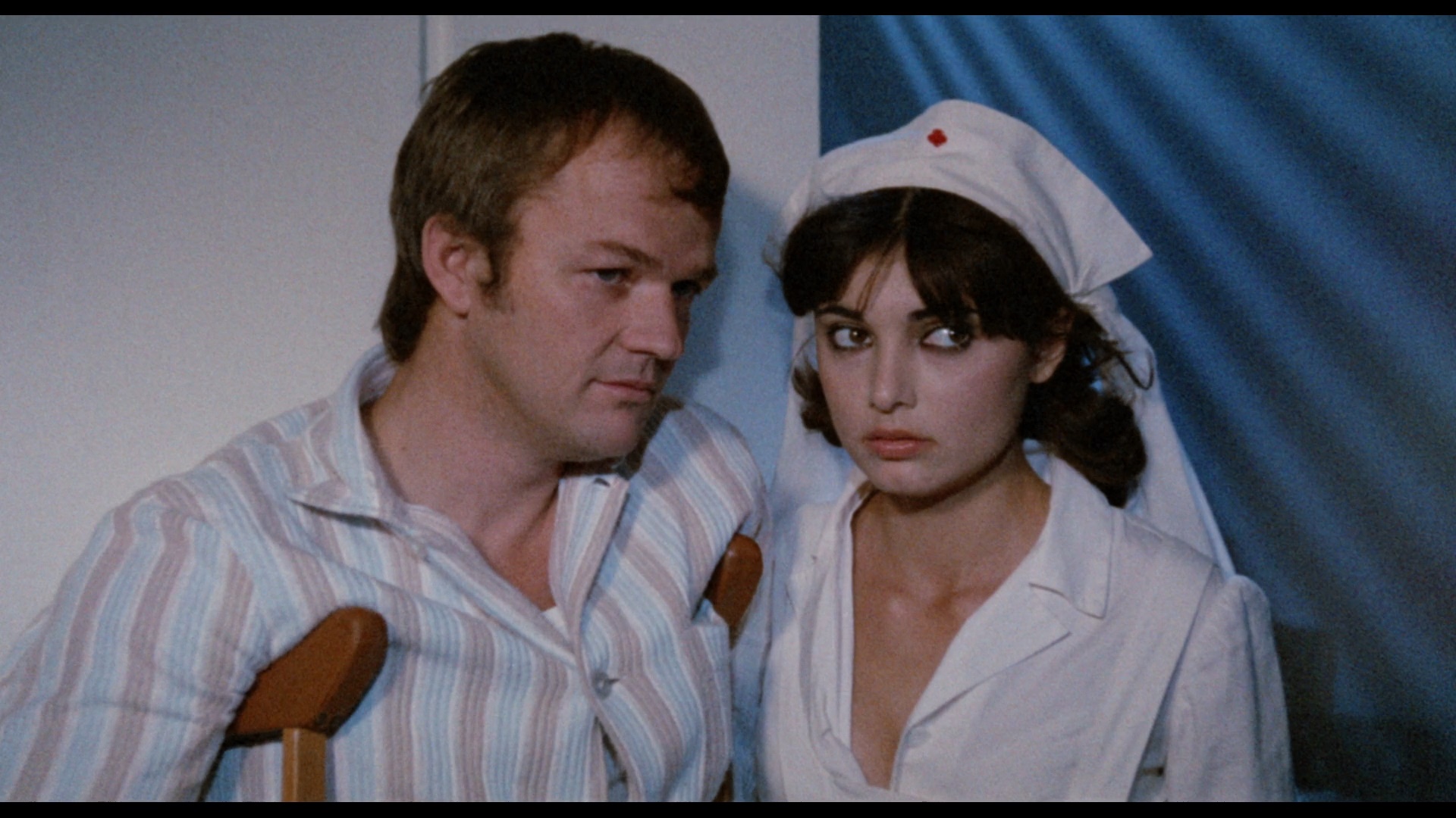 At a very dramatic hospital for the elderly and insane, Sister Gertrude (Ekberg) is slowly cracking up and still showing signs of emotional turmoil and hatred from a sexual assault years before. No one suspects she might be going off the deep end, but indeed, Gertrude is acting out by shooting up in private, using the younger Sister Mathieu (Behind Convent Walls' Morra) as her sexual plaything and inflicting all kinds of petty distress on the patients. Oh, and sometimes she puts on normal street clothes, heads down the local bar, and bangs complete strangers after sucking down a pack of cigarettes. Meanwhile, someone's offing the patients in a gory fashion... but is Gertrude far enough around the bend to be the culprit?