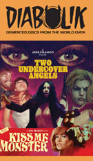 hued color schemes that threaten to blaze right off your TV set. Theatrical trailers for both films are included along with Franco interviews. Two Undercover Angels features the more traditional of the two, "The Case of the Red Lips" (13m59s), in which Franco covers the genesis of the projects, his memories of the producers and international financing, and working again with Reynaud on two of his more featherweight efforts. Kiss Me Monster features the much wilder and more endearing "Jess's Tangents" (22m26s) which finds the director spouting off on a wide array of topics in the most entertaining and hilarious manner. Too bad he couldn't do an entire audio commentary like this!