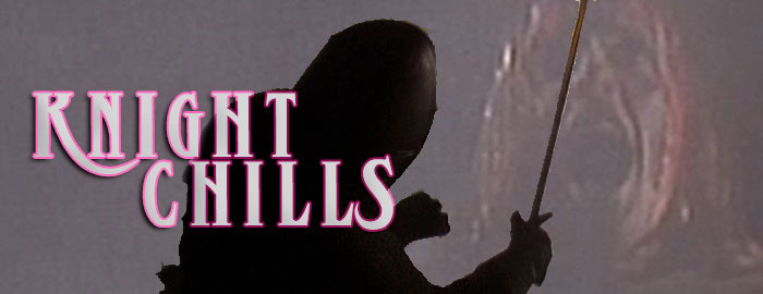 but that oversight gets corrected a bit as the reliable Saturn's Core offers up the Michigan-shot Knight Chills. Picking up the mantle from the earlier role-playing game slasher film Skullduggery, this one comes up with the irresistible idea of a supernatural stalk-and-slash saga centered around an actual knight on horseback picking off his prey.