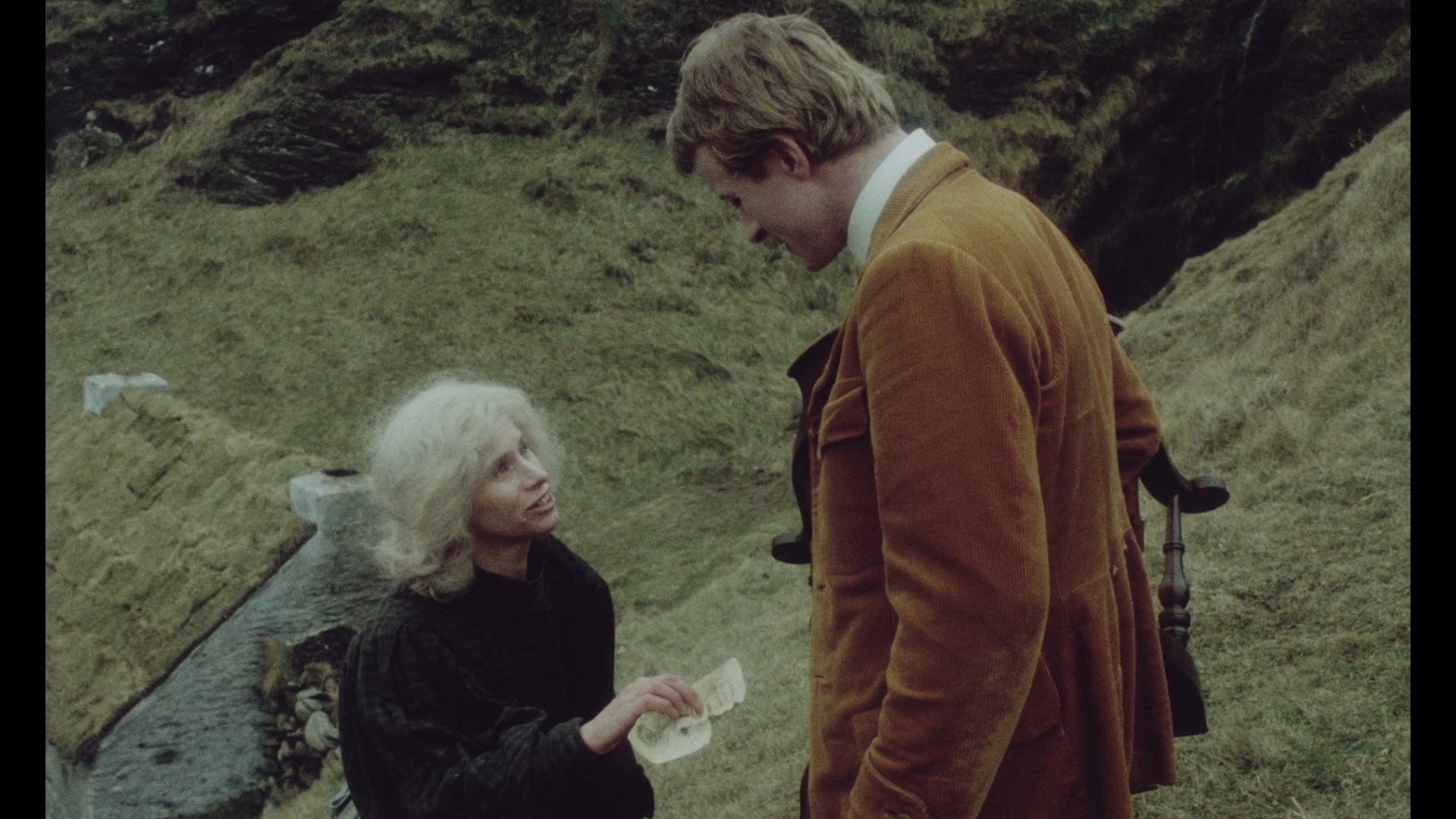 most definitely returns to leading lady status with 1978's Mysteries, a prestige Dutch production pairing her up with another fearless star, Rutger Hauer, who had forged his own sexually candid path to fame in Paul Verhoeven's Turkish Delight. Based on an enigmatic but popular novel by Knut Hamseun and shot on the Isle of Man with an international cast, the film failed to secure much theatrical distribution outside of its native country and, despite a handful of nearly unwatchable (and usually very cut) fuzzy VHS releases, it's become something of an odd footnote in the careers of its stars. That's a shame as it's a fascinating and sometimes striking art film with a unique atmosphere and sometimes beautiful visual highlights.