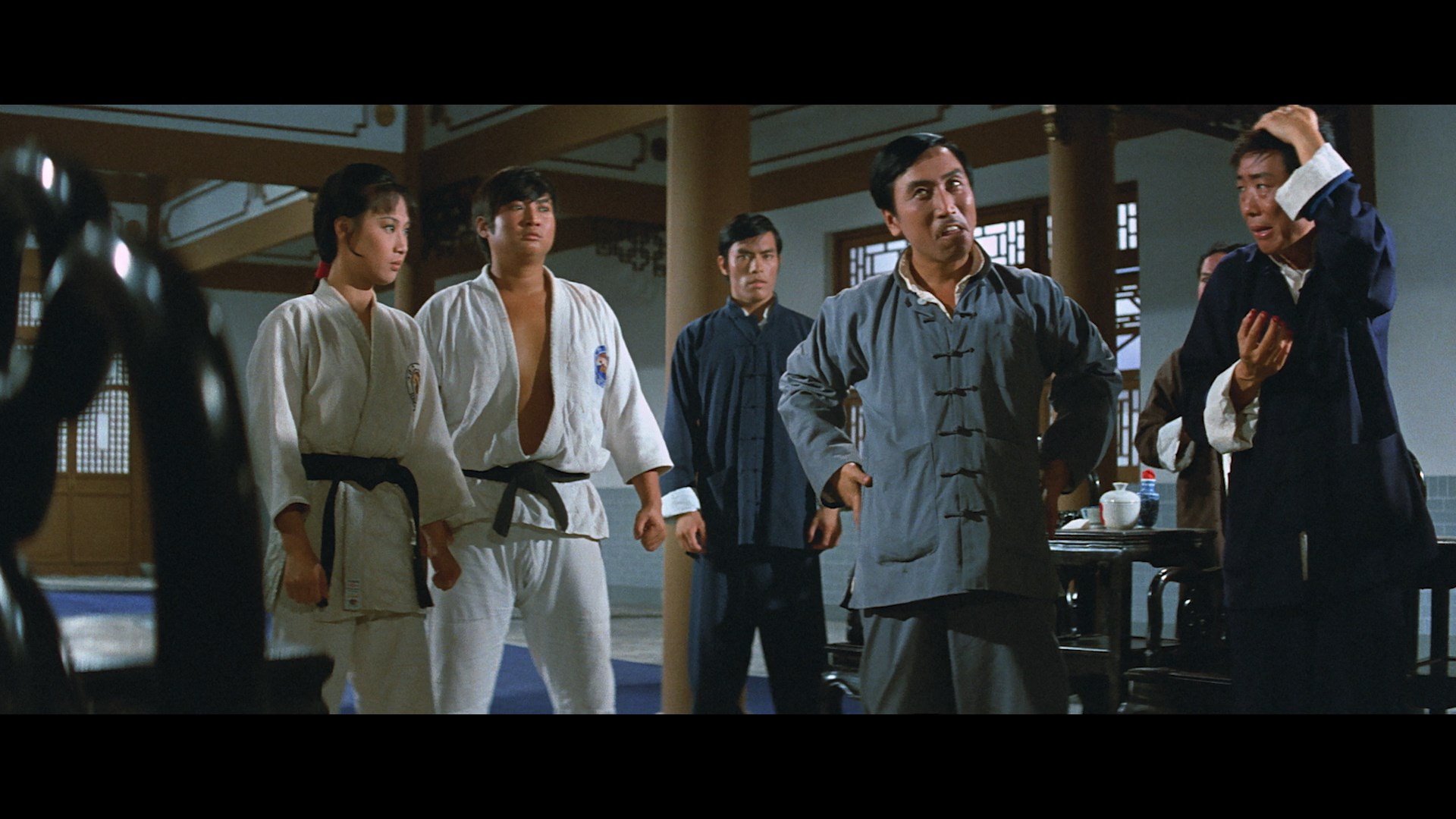 The second Blu-ray is devoted to Hapkido, also shown as Lady Kung Fu and featuring a much larger role for Sammo Hung (who also served as a fight coordinator on both films). This time it's a variation on the "let's set up a martial arts school" plot any self-respecting fan of these films knows very well, this time earning a special place in the history books for its small unnamed roles for Jackie Chan, Corey Yuen, and Yuen Biao as students. Here the action takes place in 1930s China where Yu Ying (Mao) and her two best friends from school, Kao Chang (Wong) and Fan Wei (Hung), have just graduated from school in Korea. Before heading home, they incur the wrath of some Japanese thugs who turn out to be the opening volley in a chain of Japanese attempts to shut down their fledgling hapkido academy. Eventually things