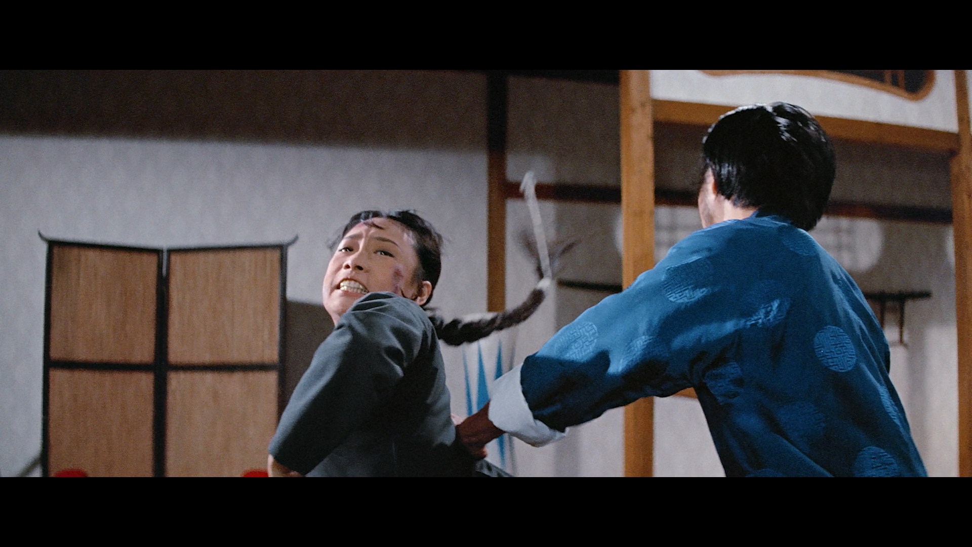 dumped by Ling. Now she's determined to make him pay with his life, but he talks her into holding off until his own quest for satisfaction is completed. Cue the showdowns, conflicted loyalties, and inevitable finale in which Tien has to decide whether to fulfill her own vow. It isn't hard to see why this one got exported so widely since it ticks off all the martial arts '70s boxes with a fight scene every ten minutes or so, with no visual or narrative innovations in sight to get in the way. It's also worth noting that this was shot with what look like outdated anamorphic lenses, similar to what you'd see in early CinemaScope titles, with actors on the periphery of wide shots looking very squeezed and occasional inherent focus issues popping up. That's a shortcoming inherent in the original film, so any widescreen version since then has had it. Also worth noting is the patchwork soundtrack, which is stranger than usual thanks to its generous recycling of Michel Legrand's score for The Picasso Summer.