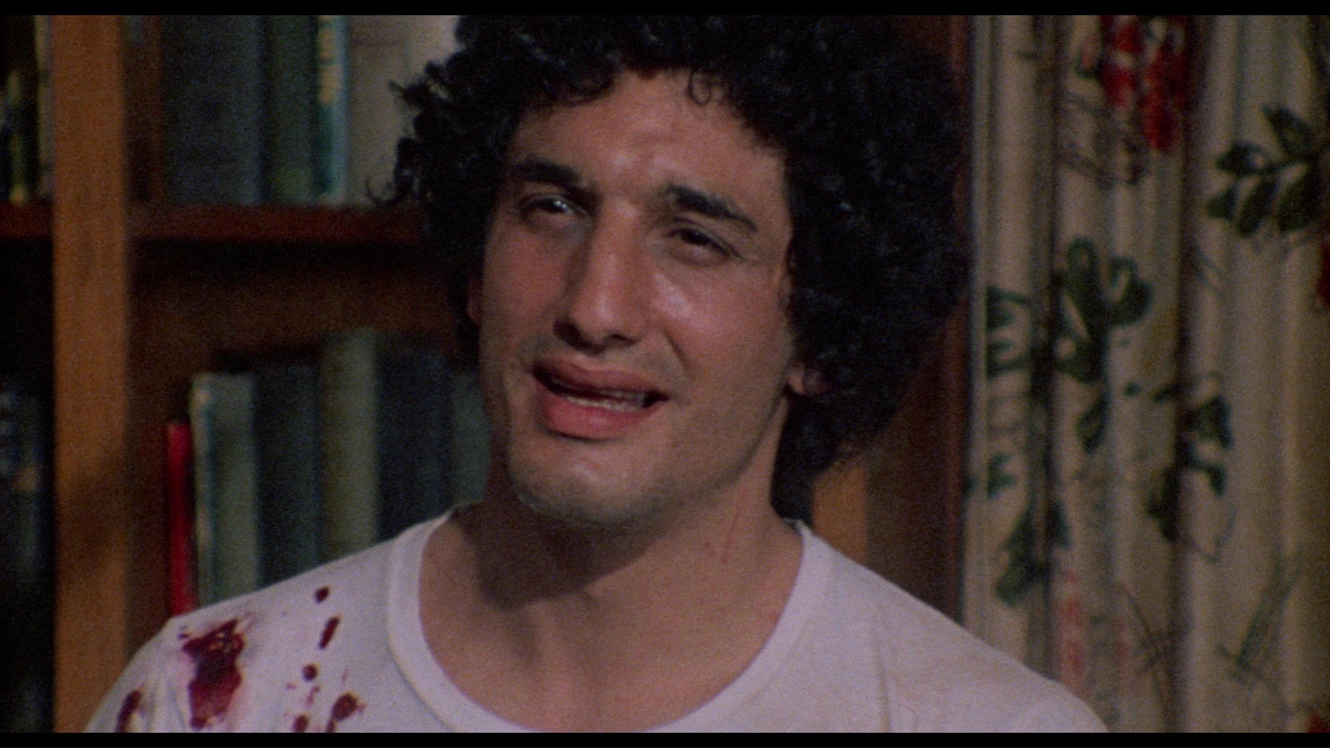 On to disc two, you get both the alternate Krug and Company version (83m50s) and the R-rated cut (81m52s), the latter available for the first time since the Vestron VHS release. Image and sound quality is comparable to the unrated one on the first disc . The Tales That’ll Tear Your Heart Out segment and "Krug Conquers England" pieces are the sole archival extras here; otherwise it's all new material, starting off with "The Craven Touch" (17m10s), a remembrance of the late director from Cunningham, composer Charles Bernstein, producer Peter Locke, cinematographer Mark Irwin, producer Carly Feingold, and actress Amanda Wyss essentially sketching out the path of his career from this film through his ascendancy to one of the most influential names in horror films with titles like The Hills Have Eyes and A Nightmare on Elm Street. It's also a reminder of how many major players from this film -- Craven, Hess, and Lincoln -- are no longer with us. In "Early Days and Night of Vengeance" (9m4s), early Craven compatriot and future Street Trash producer Roy Frumkes (who was the keeper of the infamous outtakes) waxing nostalgic about Craven and the lightning in a bottle nature of this highly unsettling classic. Sheffler pops up again for a 2017 Q&A (12m25s) at the Egyptian in Hollywood for a Cinematic Void screening of the film, basically recounting again how he was cast in the film and chatting about his friendship with Hess and respect for Lincoln. The previously unseen Hess interview "Songs in the Key of Krug" (9m41s) focuses on his music career and his approach to scoring the film with very extreme counterpoint as well as a valuable acting tip he learned after playing Krug. The limited Arrow edition also comes with a double-sided poster featuring new artwork, six lobby card reproductions, reversible sleeve art including a new design by Paul Shipper, and a book featuring a new analysis of the film by Stephen Thrower.