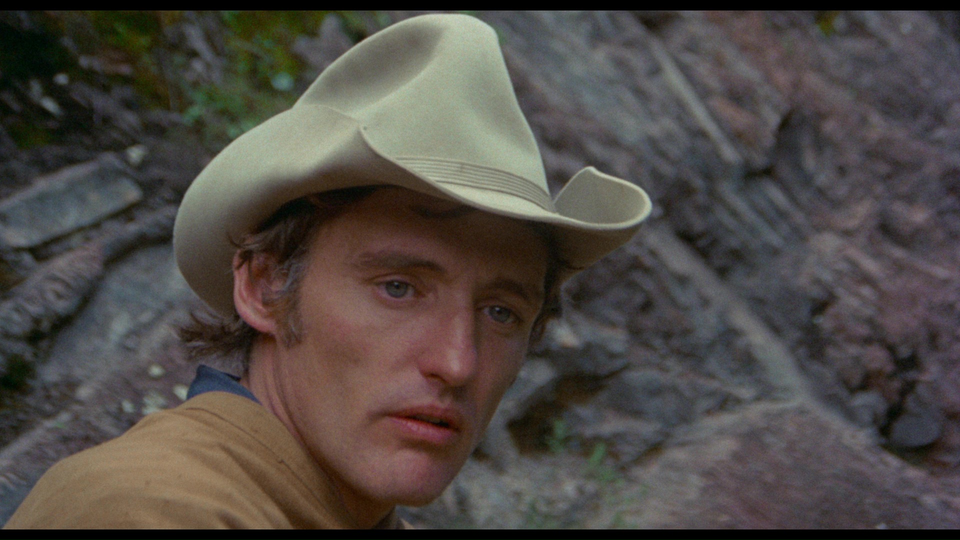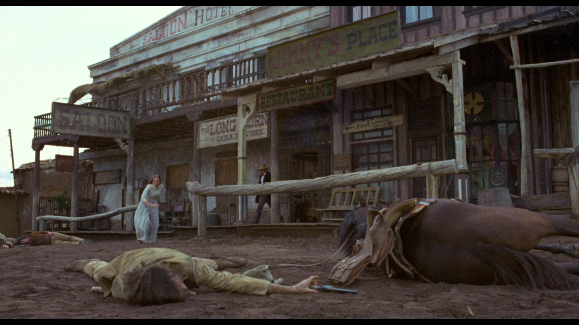 population, who have decided to embark on enacting their own "film" (with sticks arranged into a "camera") in an imitation of the visitors, albeit with Kansas now playing a very different role. An ongoing search for gold, a romance with a prostitute, and hazy abstract conversations also figure in the free-associative snapshot of the contrast between film and reality.