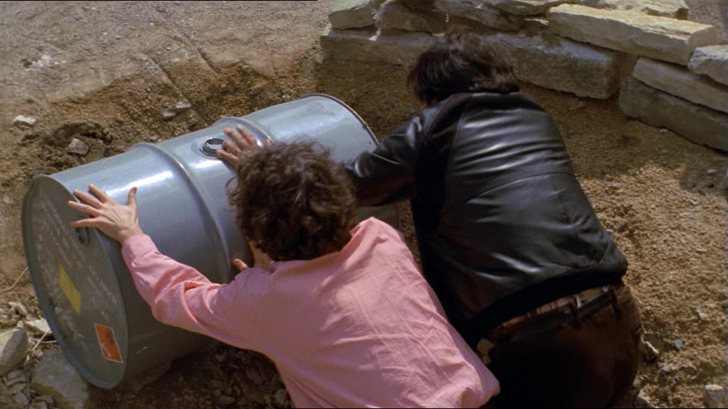 American release, plus the selected scene 2005 Blanchard commentary (25m59s) and a new commentary by Kevin Lyons and Jonathan Rigby comparing elements of this film with The Grapes of Death and The Night of the Hunted, the issues with the chemical spill kick-off, the unusual elegaic tone driven by childhood memories, echoes of Countess Bathory, and much more, including a nice surprise quote from our own Rollin interview at one point. The Encore release's 2005 Blancard intro (26s) and Rollin's 1998 intro (1m44s) can also be played before the film. Though it isn't advertised, there's also an option to watch the German-language VHS version of the film (with optional English subtitles), Scare, which has a different, Goblin-flavored music score.