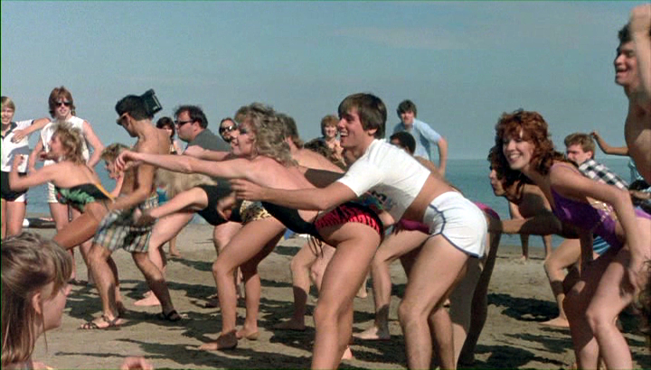 At Beaver High, four buddies -- chubby Marvin (Warren), preppie Brad (Genessee), suave Steve (Van Derk Kolk), and nerdy "Hugh G. Rection" (Deveau)-- all get in trouble for pulling off massive pranks on the last day of school, which culminates in all of the girls stripping down for a fake, videotaped medical exam and all of the male students standing buck naked in the female teacher's lounge. They're all forced to spend the summer at Coxwell Academy, which is presided over by the equally frustrated Mr. Arsenault (Canadian comic MacDonald). All of the men young and old set their sights on the new French teacher, Mona Lott (Blue Monkey's Belliveau), who can't even say "au revoir" correctly but does know how to fill out a sweater. From this point the film essentially fractures into a string of barely-connected skits as each guy humiliates himself by dressing in drag to bathe with a nearsighted sex kitten, participating in jazzercise classes, participating in a beach dance number called "Do the Screw" (featuring a very enthusiastic extra in a cut-off white T-shirt who has got to be Jim Carrey, even if he's credited nowhere for this film), dissolving all the girls' swimsuits in the school pool, and concocting a final humiliation for Arsenault climaxing in... the four leads performing a new wave song.