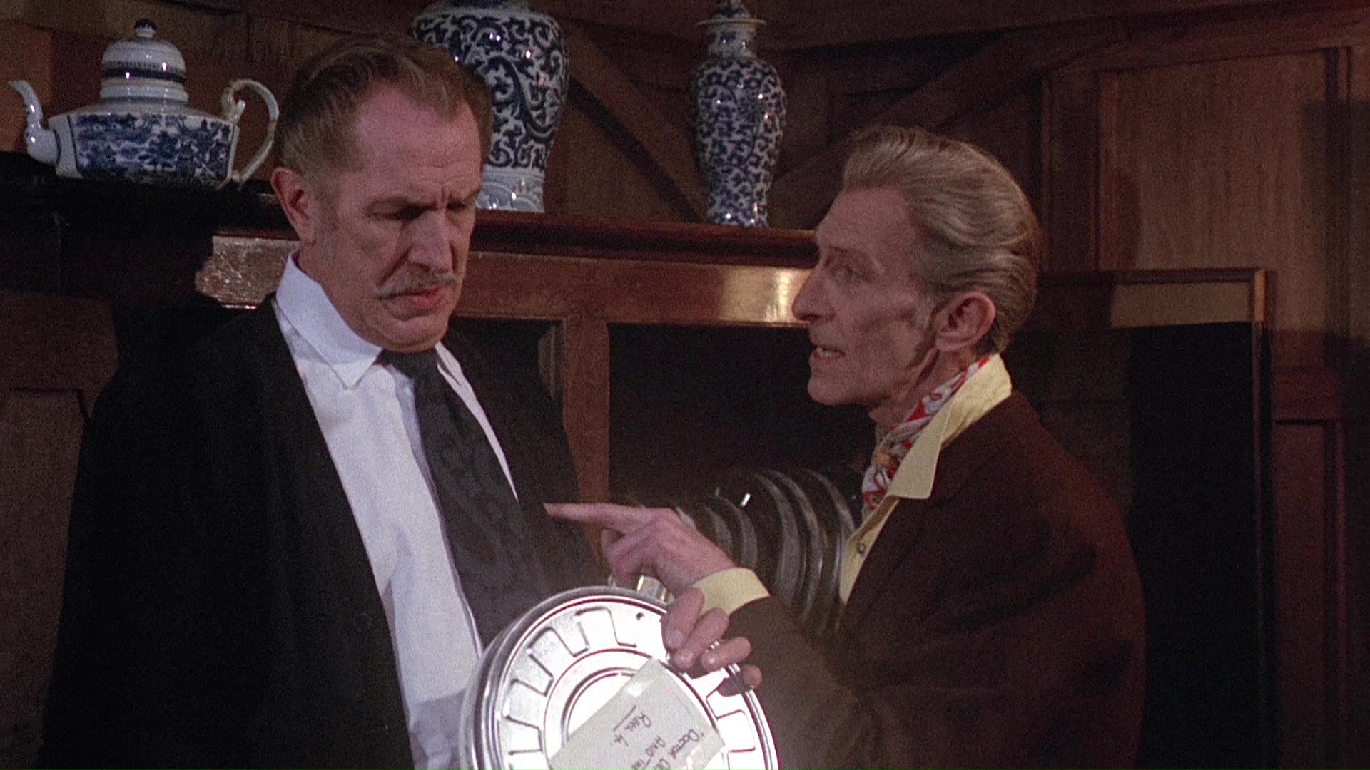 and Darling) was brought to direct this film, an odd choice considering he only had a tiny handful of helming credits to his name at the time including Rentadick and Every Home Should Have One. His mostly flat visual style and lack of feeling for the genre are unfortunate, and it's no wonder he didn't direct another film after this; one can only wonder how it would have turned out with original choice Robert Fuest on board. The script is also a bit odd, lifting a tiny handful of elements from its source novel (the sataism-themed Devilday by Angus Hall) with Quarry reportedly rewriting much of his and Price's unworkable dialogue. Therefore, horror fans will find this a real treat if they don't focus too hard on trying to piece everything together and just enjoy seeing a trio of icons doing what they do best.