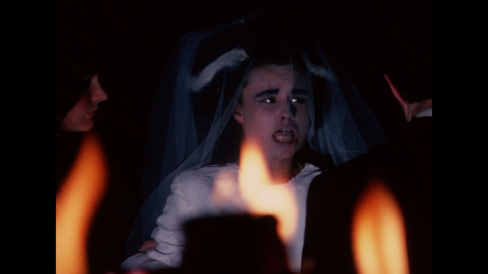 roaring back with a strong outing on disc eight: 1995's The Rite of Spring presented in an immaculate 2K restoration of its original version (90m22s) or a far more widely available video-sourced reedit (81m18s) that's interesting to see (primarily for its alternate music soundtrack) but vastly inferior by comparison. After a curious prologue involving a giggling possessed young woman, Emily (Steavenson-Payne), Reynard is back again, this time as Father James Doyle who's summoned to a country parish where paganism seems to be running as rampant as The Wicker Man or Eye of the Devil. When he isn't trying to save Emily, the priest is sent to the estate of Chris Cavenham (Kocak), the last in the wealthiest family line in the vicinity, only to get tangled up in local practices involving kidnapping, witchcraft, nightmare sequences, and sacrifice. Though it's a bit pokey in the first half (and has nothing to do with the Stravinsky composition of the same name), this is a strange and atmospheric slice of folk horror that doesn't go the direction you might expect during the big reveal at the end.