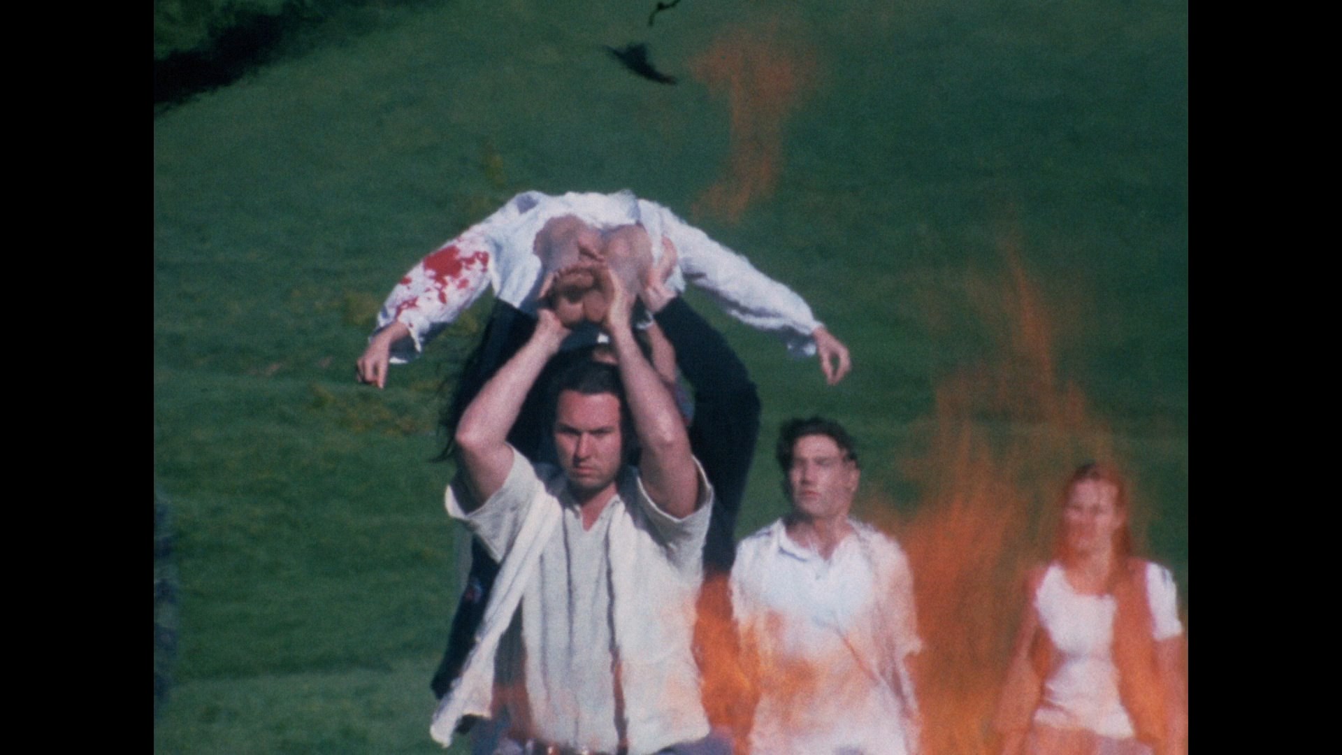 with a nocturnal Satanic sacrificial ceremony performed by a bunch of naked people covered in body paint, which turns out to be a nightmare experienced by Sarah (Judith Holding) on a train through the countryside. She arrives at her new job working as the secretary to novelist Edward Lucan (Olliver), though she spends her downtime reading about the occult and getting to know the locals like parish priest Father Daniel (Lyndon). As it turns out, Lucan is working on a book about the Antichrist (who's tied to Napoleon and Hitler somehow), which must be brought about through the skills of a shaman. There's a strong Hammer House of Horror vibe in this one, which will appeal particularly to fans of the current folk horror craze with its nefarious insidious and ancient practices lurking in a pastoral setting. Of course, this being a Murphy film there's also a truly hilarious tunnel brawl outside a pub, a suspicious pet shop owner boyfriend, and Lyndon shooting green lasers out of his mouth. The main video extra here is "Murphy's Lore Part 2: Method" (20m37s) with the director and Olliver swapping stories about some of their wilder moments including some choice bits with the cars and crazy outfits outdoors on Death Run. Also included are two trailers for Avalon, a Moonchild trailer (reconstructed in HD), a 30-image gallery, and an Avalon script gallery.