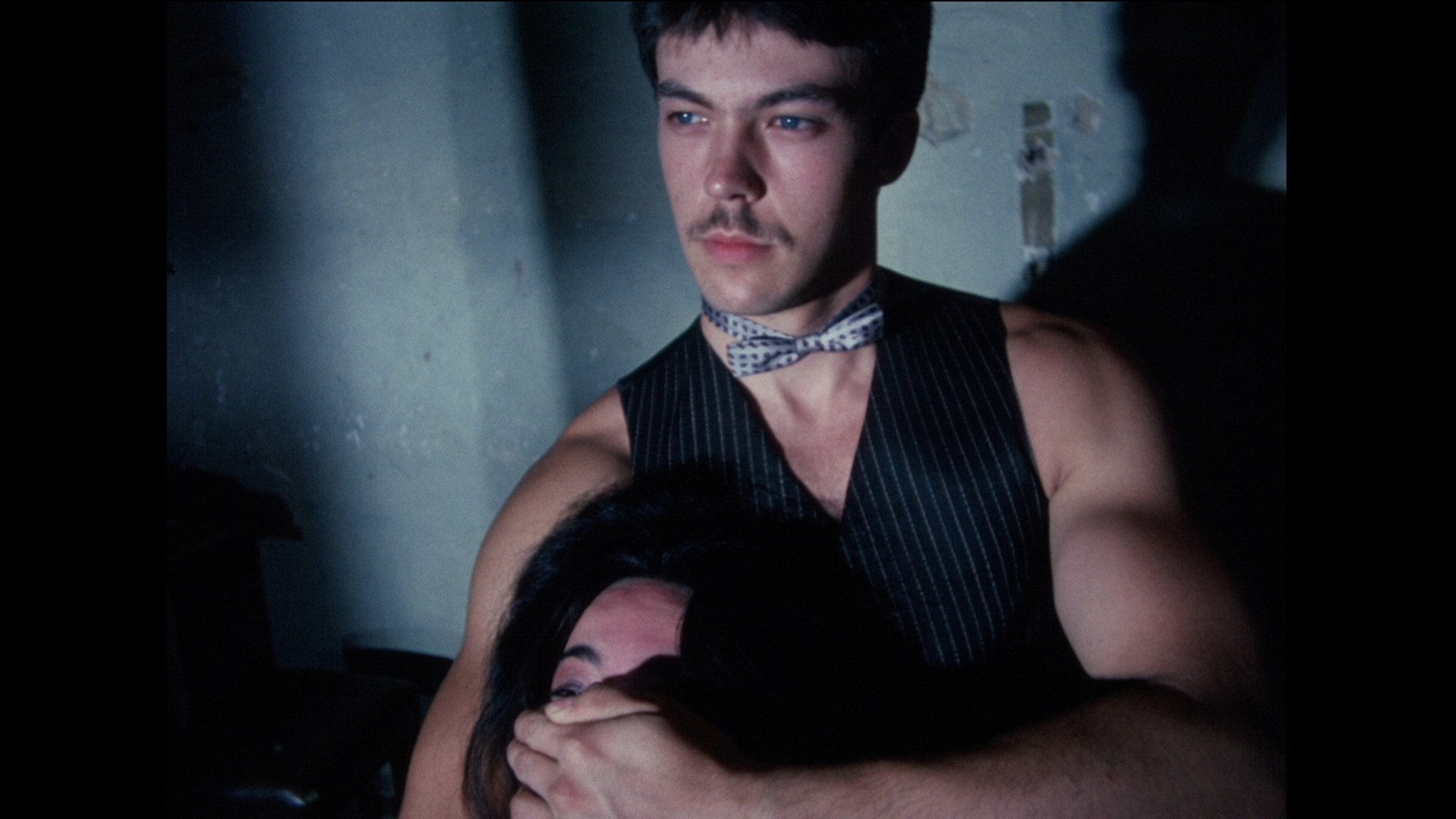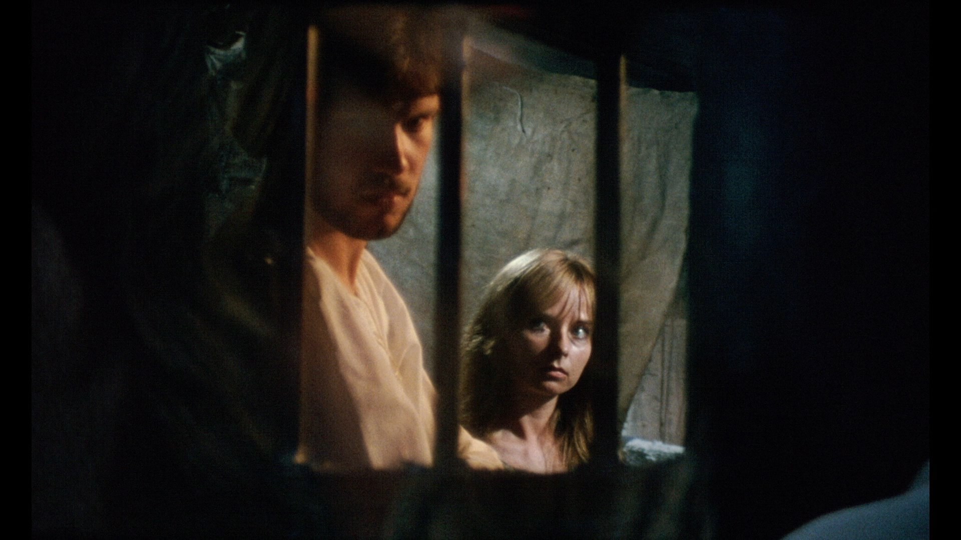 Milligan or David DeCoteau, though Murphy's approach is generally less sexualized; in fact, his love scenes tend to be very coy, and the beefcake shots have more of an innocent air about them. In the case of this disc the primary common denominator in all but one title is Russell Hall, a young actor whose four Murphy feature appearances here (plus the incomplete Seventh Day) comprise his entire screen career. First up is the 1980 short film The Cell (13m38s) in which a nameless medieval prisoner (Hall) is visited the night before his execution by a prostitute (Carol Aston), a common practice for condemned men. However, he shows no sexual interest and protests his innocence as they share their stories, during which she reveals that she has her own homicidal secret. The sort-of twist ending falls pretty flat, but otherwise this is a fairly solid two-hander with a nicely grim mood. The 1.66:1 HD transfer for this rarity looks fine, too. Also noteworthy is the soundtrack's use of Béla Bartók's "Music for Strings, Percussion, and Celesta," employed to much more famous effect the same year in Stanley Kubrick's The Shining.