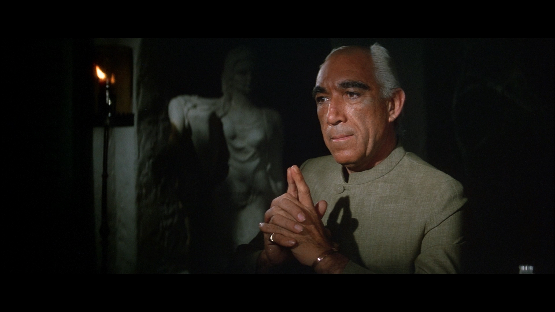 American cinema. Cinematographer Billy Williams (Women in Love) appears for a new interview (12m15s) covering the reason the film wasn't shot in Spain and why Bergen's exterior close ups had to be shot near the end of the day, and as with other participants, he finds the film "strange" and "unfathomable." He also explains how Quinn was made to feel welcome on the first day of shooting and notes how he likes his camera to be supportive of wherever the actors want to go. Set designer Tim Hutchinson, son of the film's art director William Hutchinson, appears next for a chat (10m22) about choosing the locations and determining which sets had to be constructed, with interpreters used for local labor. Finally hairdresser Stephanie Kaye recalls in a brief piece (5m43s) the challenges of showing Quinn's variable appearances between the past and present via toupees and bleach and tells a crazy story about Bergen having her eye makeup done in the dark.