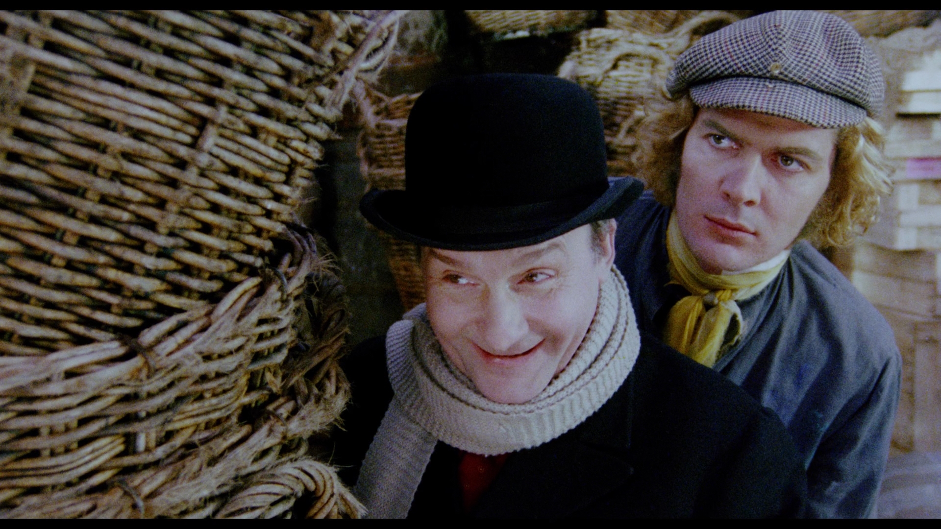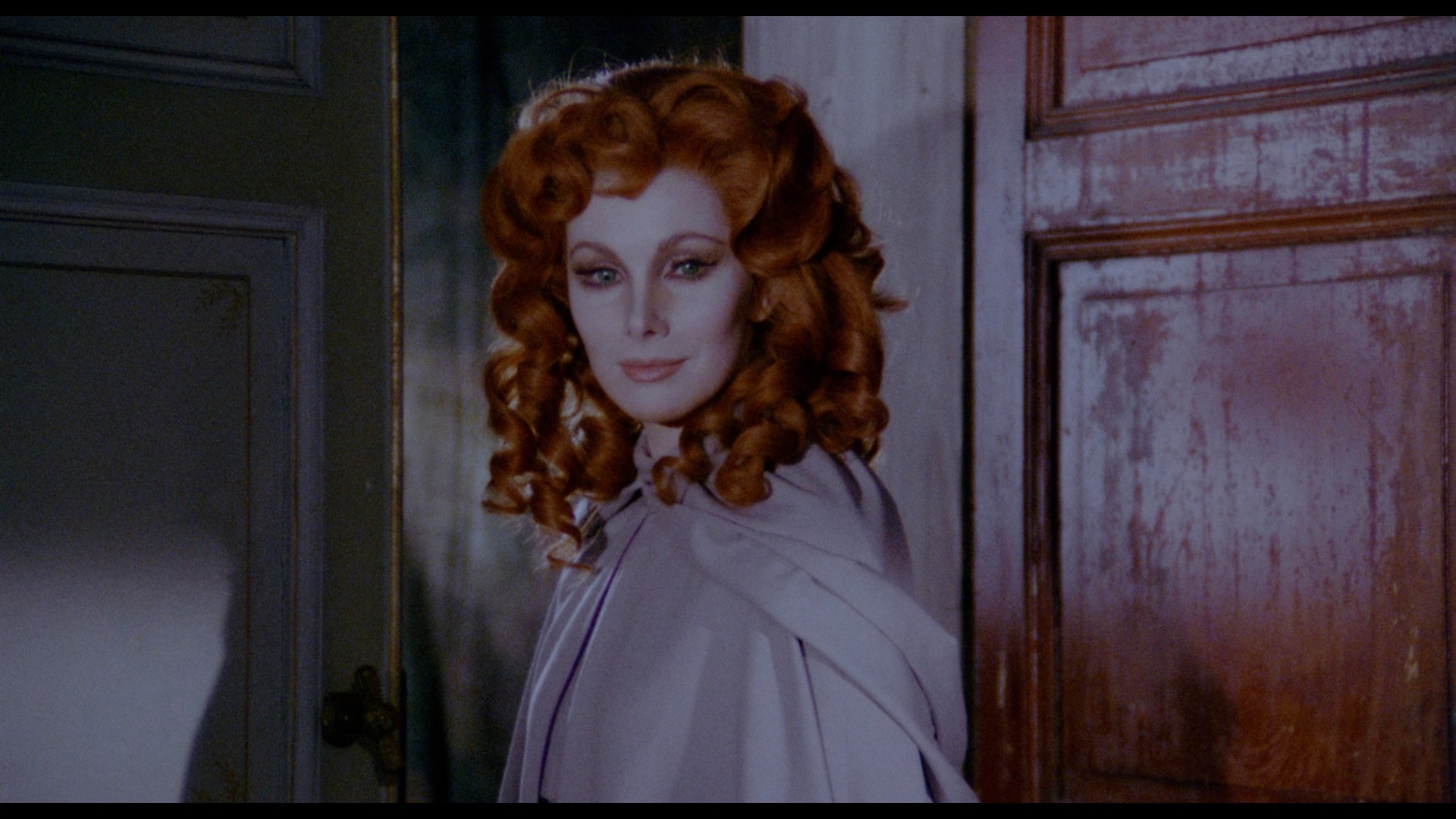 reveal the truly bizarre third-act revelation which explains the true nature of the house and its inhabitants, which is a shame since this is a film best experienced with as little preparation as possible. The unique atmosphere is unlike any other film ever made, veering from humorous fantasy to delicate eroticism to all-out monstrous horror, sometimes all within the same scene. Though his screen time adds up to only a few minutes, Welles makes a strong impression in his key role, while Hampshire shines in three very different roles (or is it more?) as the pure Nancy, the unearthly red-haired Euryale (who won't look anyone directly in the eye), and one of the prudish sisters. Cinematographer Gerry Fisher (who lensed the great See No Evil the same year) helps the director conjure up a wondrous palette of colors throughout the film, from the blood-red tavern interior to the weird purple, blue and oak-wood hues of Malpertuis, while composer Georges Delerue contributes a wonderful score with a beautifully romantic main theme.
