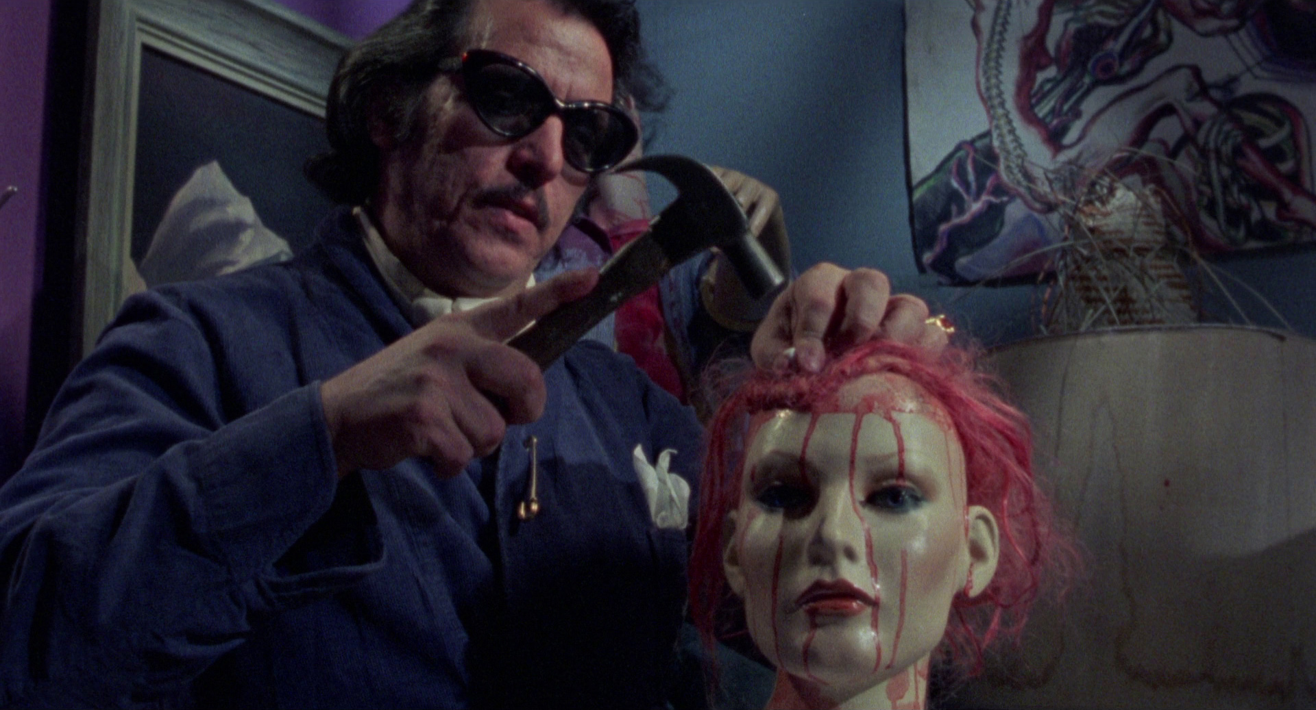 1960s. Other films like The Toolbox Murders and Driller Killer had already broken ground and faced the firing squad of an outraged populace with their brutal depictions of urban slaughter, but Maniac leaped forward considerably with its protracted, brutal set pieces including Savini's unflinching scalping effects that inspired the creepy, highly memorable poster art. Surprisingly, it's also quite well made; director William Lustig had cut his teeth working in various capacities on New York porn films (including the above average The Violation of Claudia) and even recruited a few familiar industry starlets like Gail Lawrence (aka adult actress Abigail Clayton) and Sharon Mitchell for some of the minor female roles. His style here effectively mixes gritty, dank visuals of the city's streets and subways (very similar to Cruising and Ms. 45) alternating with the interiors of Frank's apartment, whose searing primary colors owe an obvious debt to Argento and Bava. Though the role may be too repugnant for comfort, Spinell does an amazing job in