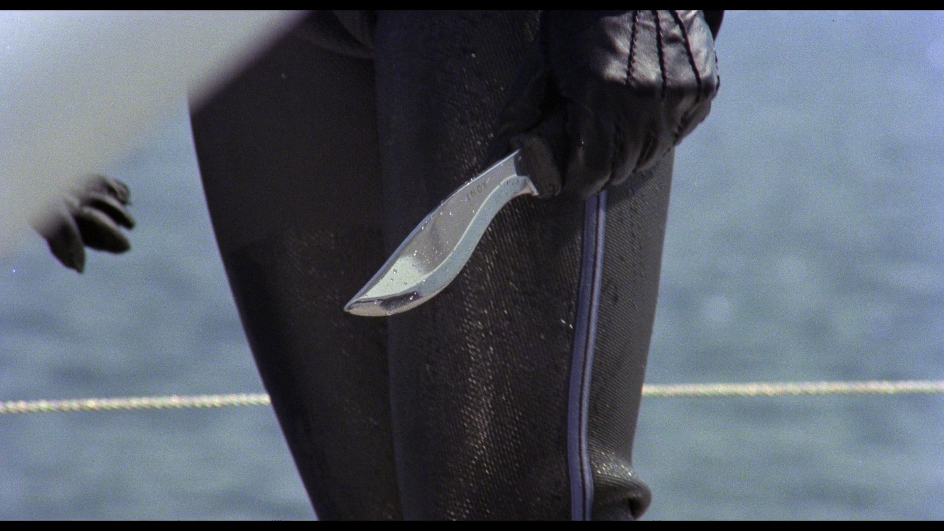 As good as that DVD was, the Vinegar Syndrome Blu-ray surpasses it handily with a rich 4K remaster that looks absolutely gorgeous (apart from that intentionally ragged opening scene). In addition to the DTS-HD MA 2.0 Italian track with English translated subtitles, this one launches into essential territory with the addition of the very elusive English track. It's actually a more enjoyable viewing experience that way as you get Kennedy's distinctive original voice here and some familiar dubbing artists filling in the rest of the cast (who were speaking a hodgepodge of Italian and English based on their lip movements). Optional English SDH subs are provided for that track as well. A different Foschi interview, "Giallo in Sardinia" (26m52s), covers his memories of the industry including his work as a dubbing artist, his experiences with Baldi after missing out on an earlier film together, and his thoughts on the cast. Nisbet returns again for a third video essay, this time looking at the body count giallo in more detail, Baldi's unusual one shot at the subgenre, and the ways this strays from the traditions of the time. The Italian trailer (this time with text cards) is also included.