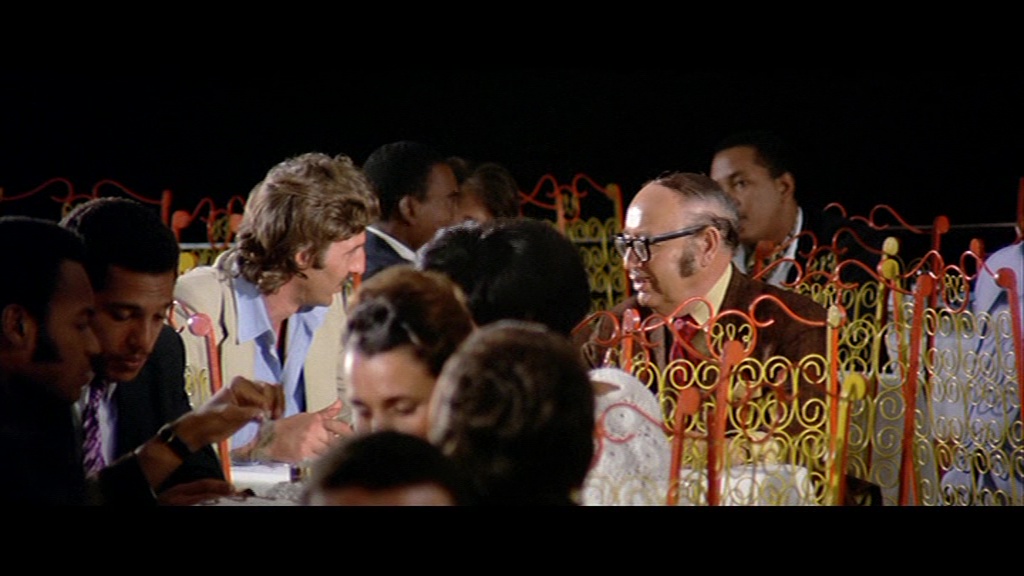 Giallo fans should get quite a kick out of this film which opened the same year as the somewhat similar Sergio Martino film, Your Vice Is a Locked Room and Only I Have the Key, also featuring Pistilli as a controlling husband, a string of murders, and a naughty dinner bacchanal involving a black woman as the erotic centerpiece. In the case of this film, that role is played by singer Shawn Robinson (in her only film role), best known for crooning on several Piero Piccioni '70s soundtracks. Here she gets to run around the dining room mostly naked except for a strap-on, which isn't the most common way of breaking into show business. Significantly, Scavolini also served as his own cinematographer here, and the results are very impressive. It's a gorgeous film from start to finish with striking scope compositions throughout as well as vivid use of symbolic color, especially the all-important white and red along with bright splashes of blue.