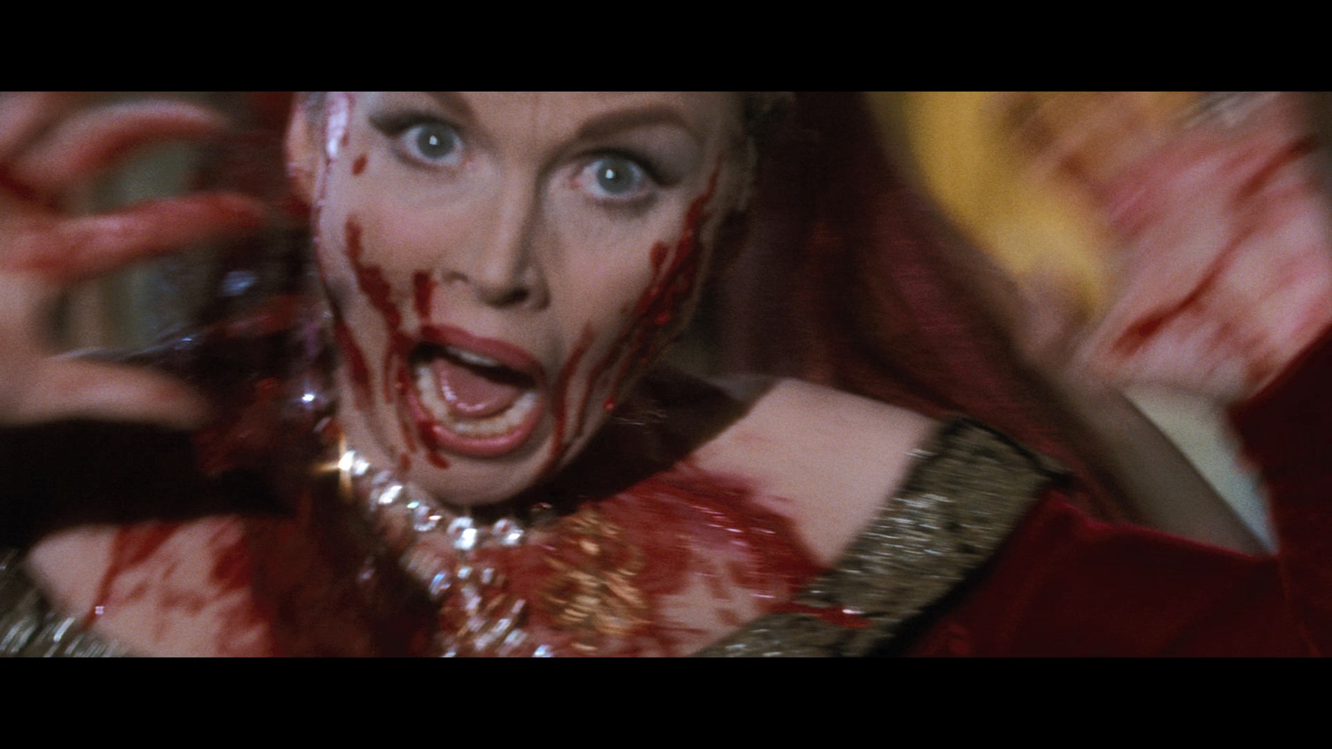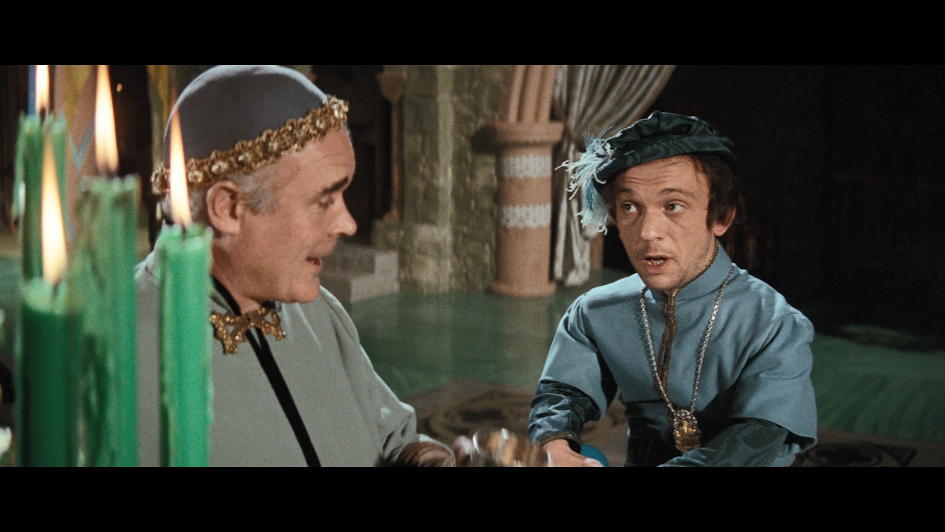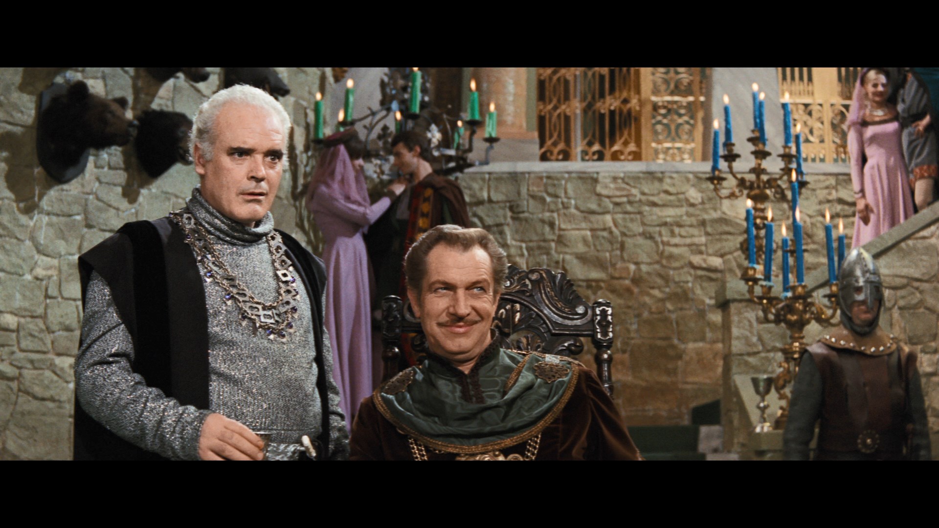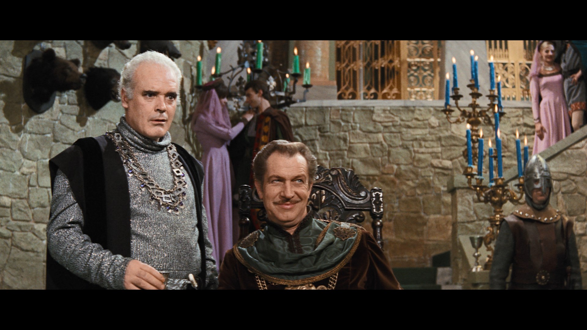 at the time by Anglo Amalgamated (rather than AIP, which passed on to Orion and then MGM in the U.S.) made things even more tricky with this film sitting out Arrow Video's box of Price-Poe titles. In 2018 the film underwent a significant restoration (via the Academy of Motion Picture Arts & Sciences Film Archive and The Film Foundation funded by the George Lucas Family Foundation) to put all of the footage back together for a truly complete version, and after a lengthy wait, that version finally debut in 2020 on Blu-ray from Scream Factory as a standalone title and in a reissued version of its Price box. All the previously censored bits are here including a fleeting bit of implied nudity, the full Hop-Toad subplot, a nasty shove against one character, and some stronger dialogue. The shorter, standard theatrical cut is included as well (though why anyone would opt to watch the censored version now is a mystery), and the new transfer is a real stunner with gorgeous colors throughout, better detail, and a cleaner overall appearance. The DTS-HD MA English 2.0 mono track is also in prime condition throughout and features optional English SDH subtitles. The solid Haberman track is carried over for the shorter cut, while the extended one comes with a new commentary featuring Kim Newman and Barry Forshaw analyzing all things Poe, Corman, and Gothic horror in the context of the film. A new video intro by film historian Stephen Jones (7m31s) charts out the essentials of the film as well as its place in both Corman's career and British horror. Also carried over is the archival Corman interview, plus the usual textless trailer and an upgraded photo gallery (4m27s).