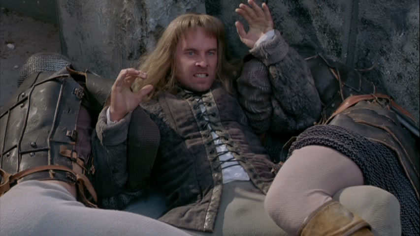 While the great Corman original barely qualifies for the horror genre (it's more of a dark fantasy art film), this one qualifies far less as it spends most of the running time on our antihero's internal anguish. It's basically a glum medieval melodrama with a couple of very mild gothic moments thrown in like a fleeting bit of torture and the title character's appearance in the last third. That said, Paul fans will enjoy the fact that he's in practically every scene, and this being a Corman film, there's a brief nude post-orgy scene thrown in to keep viewers awake.