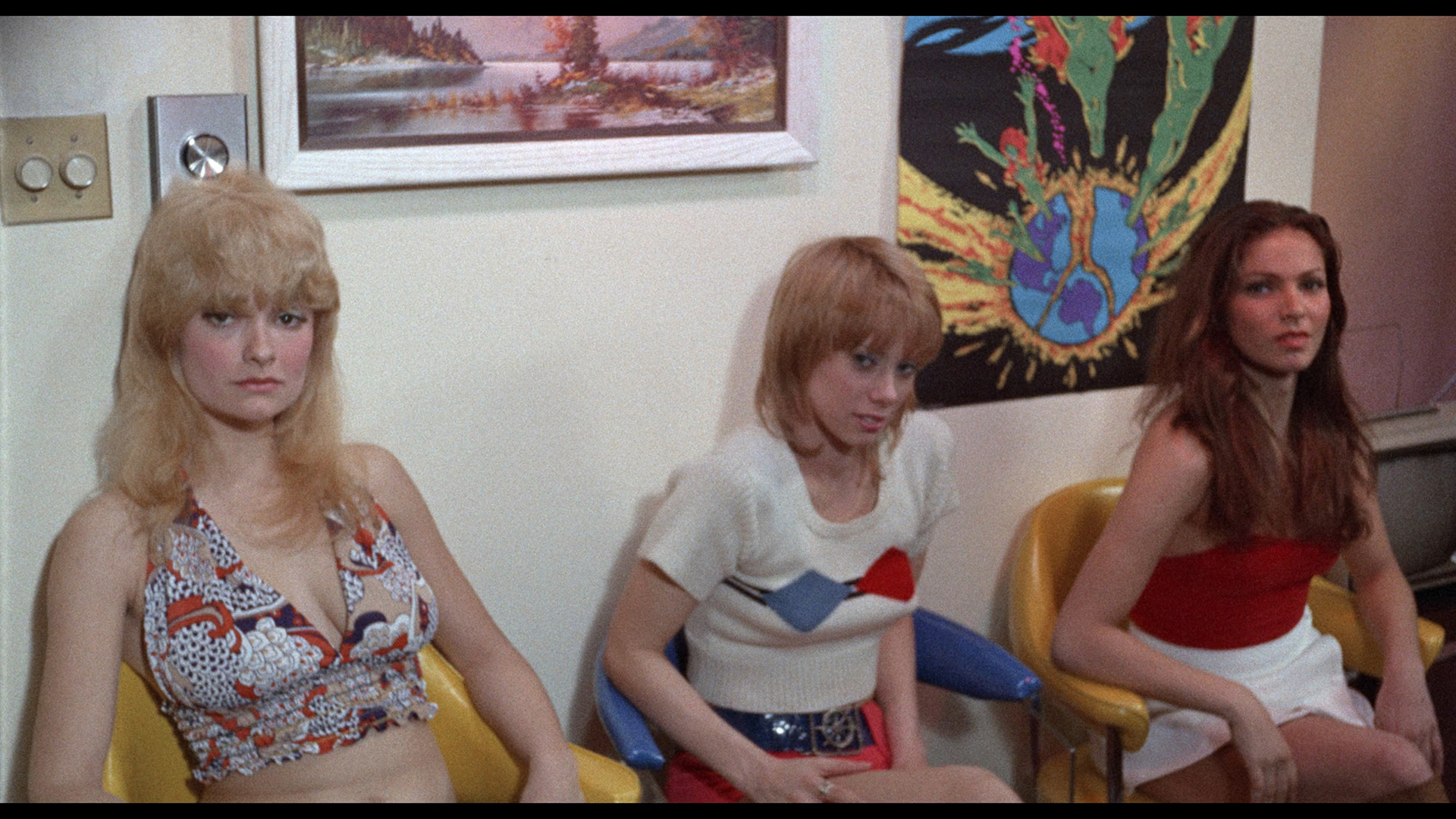 earliest in its history in 2013, was the first home video release anywhere for this film which has been out of circulation for ages. You'd definitely be best off reading the informative, very useful liner notes by Chris Poggiali (obscure cinema guru from Temple of Schlock) before watching the film, as he pinpoints the film's years of MPAA submission (1973, which sounds about right given the movies playing in the background), its first theatrical release (1974), and its fate in the hands of infamous distributor Edward L. Montoro. You'll also find out more about the actresses, the social significance of massage parlors, and the film's strange connection to chess champ Bobby Fischer, among other highlights. He also speculates convincingly about three sequences most likely shot after principal photography to up the sex, romance, and action quotient; you shouldn't have much trouble figuring out which ones they are. Now onto the disc itself, with the Blu-ray being the preferable version of course. The transfer from the original camera negative looks great, with no significant damage apart from what appear to be a tiny handful of warped frames. The clarity of the Blu-ray also points out a few fun oddities, such as the fact that guy killing Jordan at the beginning very clearly isn't the guilty party seen at the climax. The audio (two-channel Dolby Digital mono) doesn't sound like it was ever all that great given some touch-and-go background noise and flat dynamics, but that wasn't exactly uncommon with productions like this. The standard version of the film runs just a couple of seconds shy of 80 minutes, but you can also opt to play a "re-release version" (the Montoro one) which is simply the same transfer but skipping the first six minutes (a prelude between massage girl Anne Gaybis and director Fox as a client), a single-take vignette establishing the film's setting as well as its final potential victim. Also included is a 7m50s reel of outtake footage (including some far more graphic and extensive