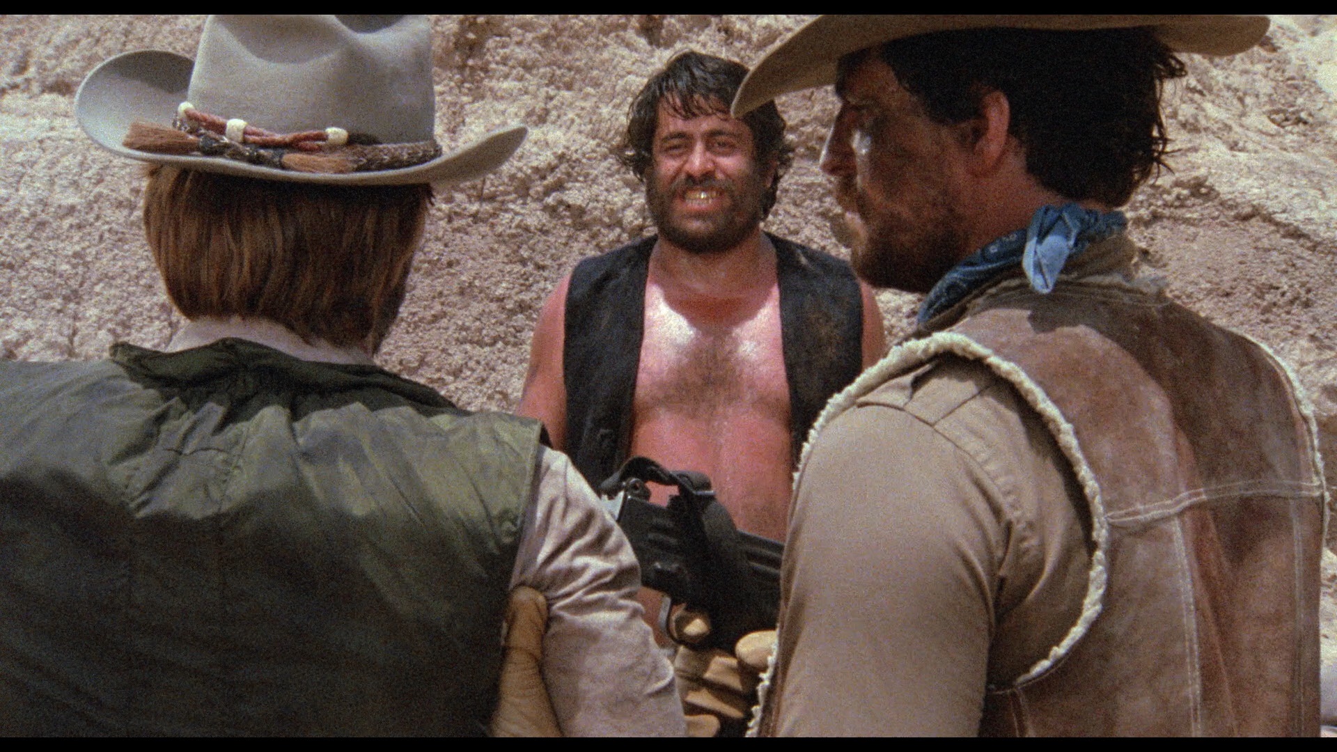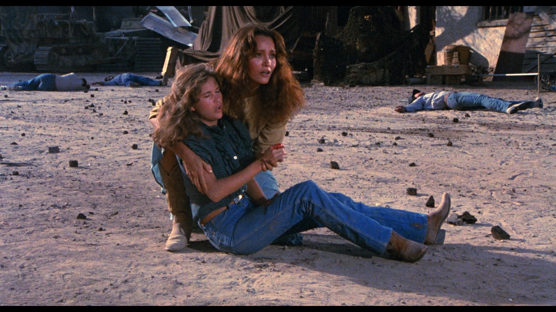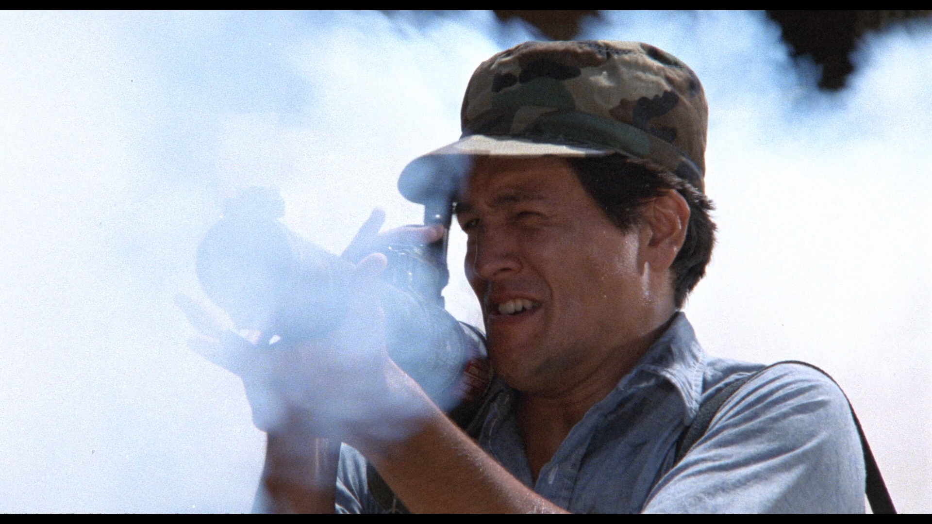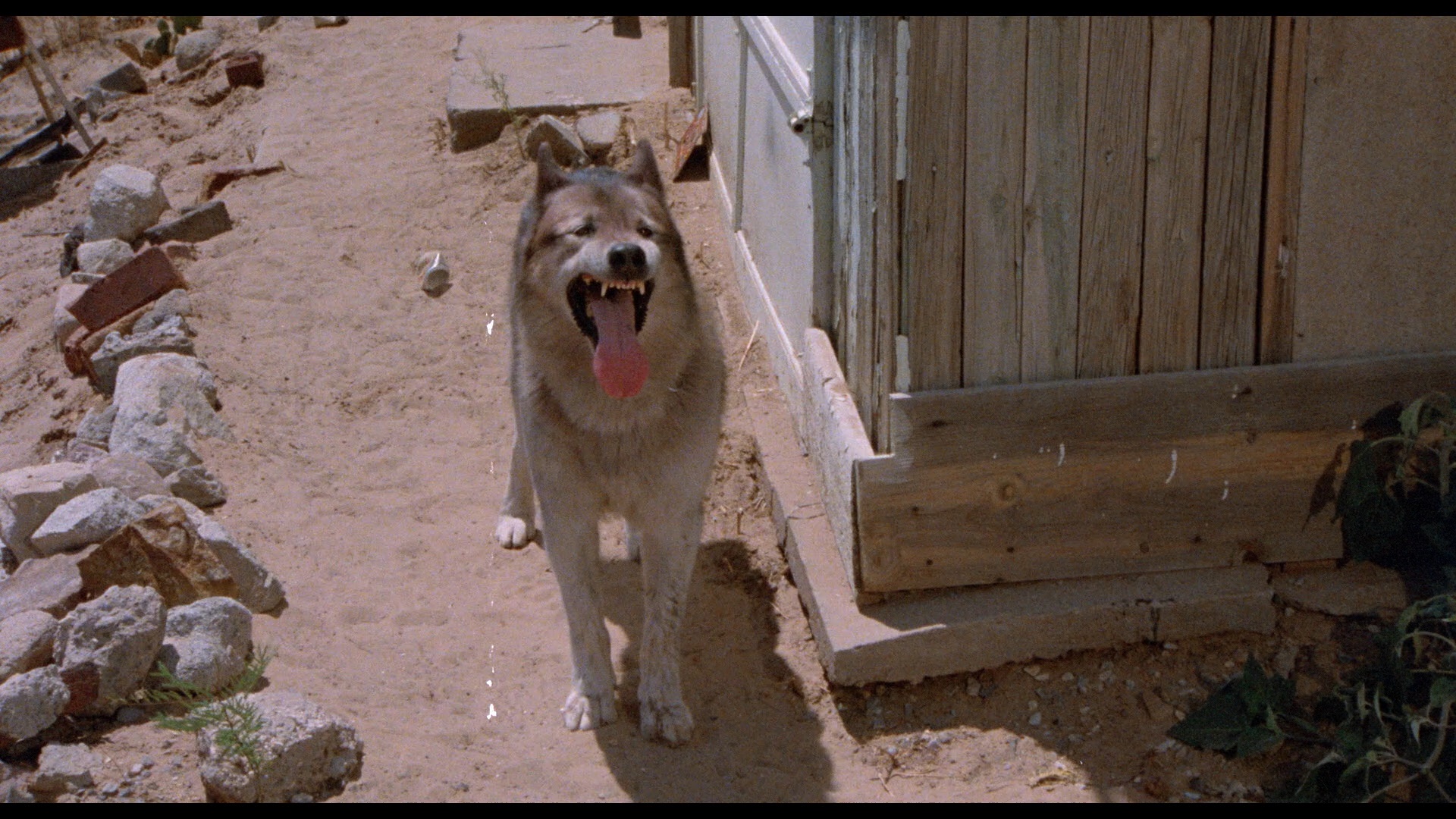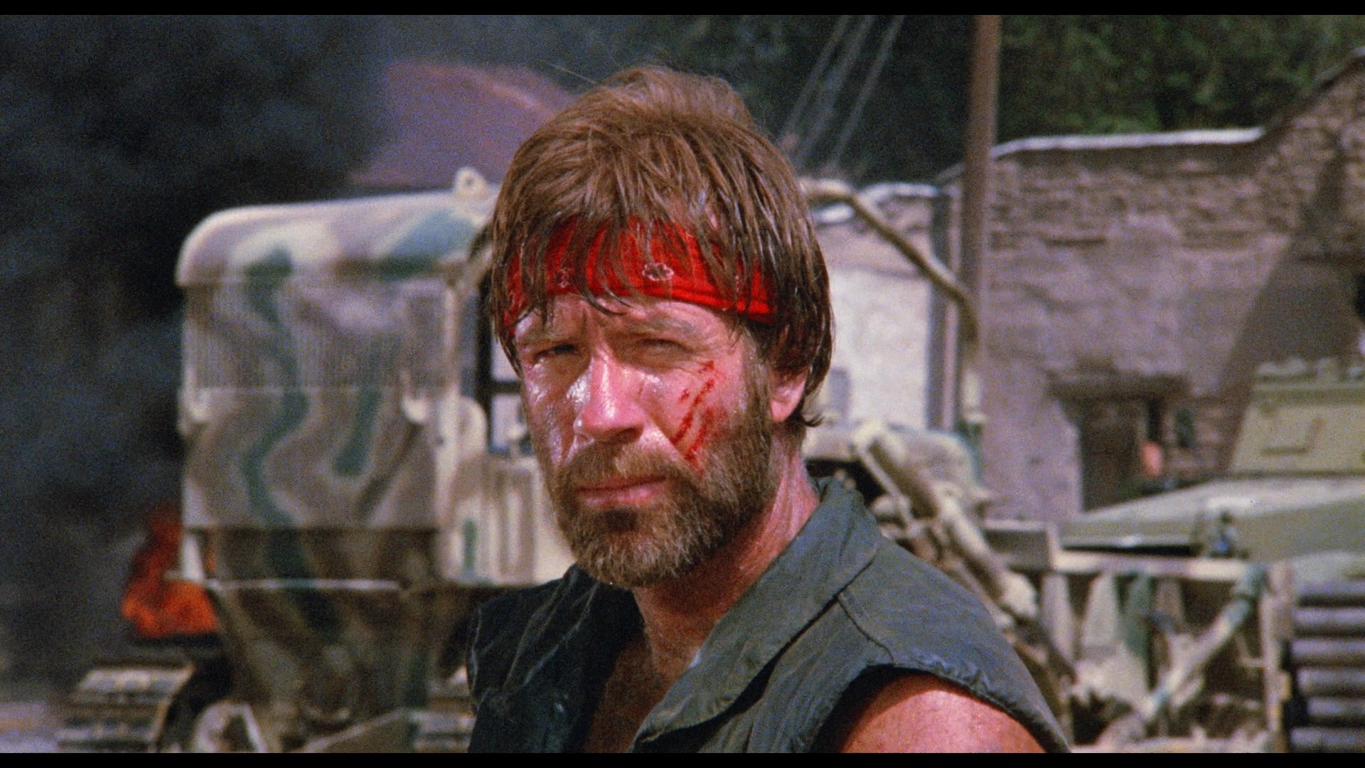 DTS-HD MA English 2.0 mono track is also in solid shape and accurately reflects the original mix, with optional English SDH subtitles provided. A new audio commentary with Carver, actors Robert Beltran and L.Q. Jones, and producer Yoram Ben-Ami is moderated by C. Courtney Joyner, and they keep things fast and informative here as they cover plenty of topics including the score (recorded at Ennio Morricone's church), convincing Norris to go grungy and grow a beard, the apprehension of using Carradine due to his Kung Fu association, the sweet and shy disposition of wolves, the evolving nature of action stars at the time and the near future, the novelty of seeing Norris as a dad, and much more. For some reason only Ben-Ami is listed as a participant on the menu screen, but rest assured everybody is present. Also included are separate interviews with Beltran (9m46s), Jones (10m15s), Leon Isaac Kennedy (11m47s), and Ben-Ami (7m27s), who all concur that it was an extremely pleasant, efficient, and drama-free shoot; Kennedy gets some of the best anecdotes, including how he and Norris would swap stories about their idols, Muhammad Ali and Bruce Lee, during their morning workouts. The theatrical trailer is also included. Reviewed on June 18, 2020
