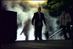 Thanks to its piecemeal construction, the strength of Meat Market lies mostly in its incidentals. When a dialogue or driving scene threatens to overstay its welcome, director Brian Clement (Westby's boyfriend) throws in a quirky touch or surreal image to keep the viewer off balance. The pure zombie imagery works best, include a stunning tracking shot through a nocturnal parking deck under siege, flooded with smoke and shuffling zombies picking off anyone in their way. The standard badass gunplay is really the film's biggest weakness; a longstanding element of post-Tarantino '90s low budget films, the assumption that tossing guns into characters' hands makes them cool is starting to wear pretty thin. Fortunately there are those vampires and the Mexican wrestler along for the ride to keep things interesting... Also, bonus points for the most stomach-churning closing credits in recent memory.
