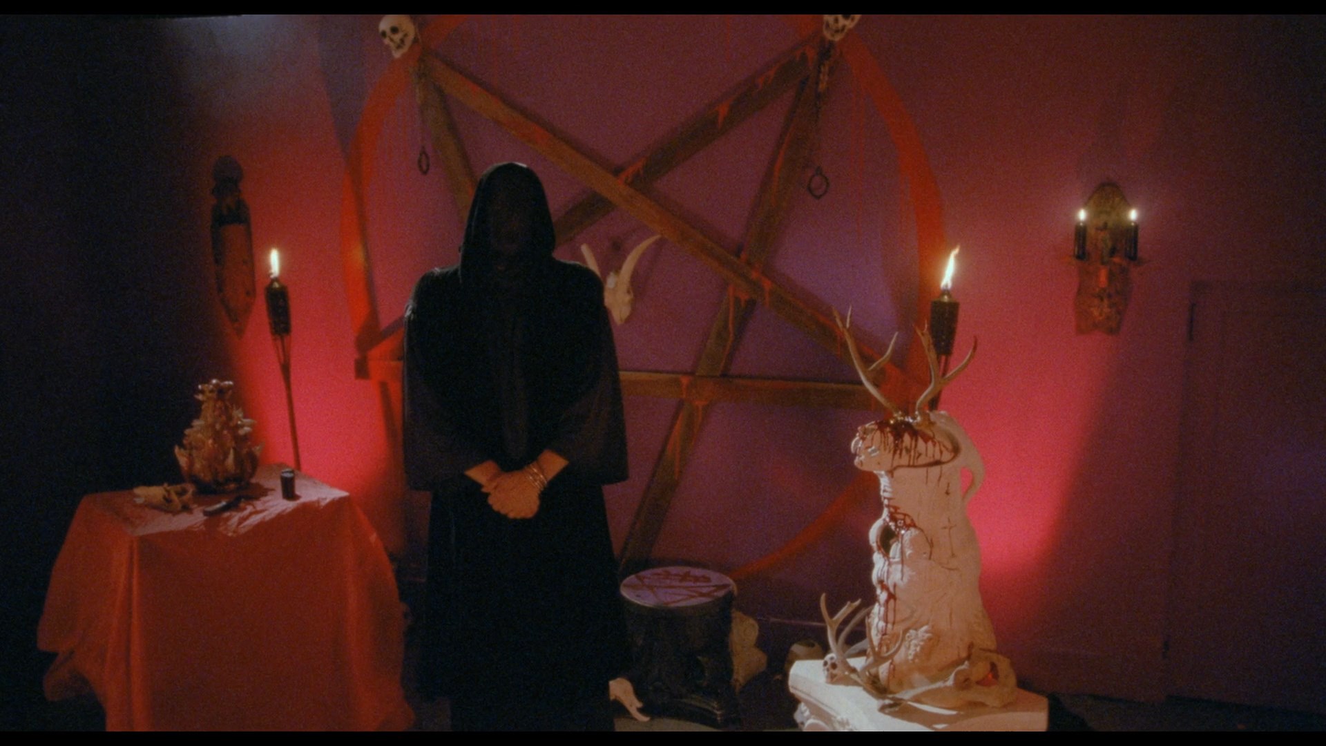 Initially issued on VHS by AIP Home Video in the U.S. and a handful of territories in Europe and Canada, this film first appeared on DVD in 2001 from BCI / Eclipse as a double feature with Bad Cop Chronicles. That transfer looked only slightly better than the VHS, presented open matte with plenty of bobbing boom mics and set edges accidentally exposed at the top. Needless to say, the 2022 Blu-ray premiere from Culture Shock is a massive improvement that finally makes this look like a real movie. Mind, Body & SoulDetail and color are excellent, and you can finally make out everything going on in some of the darker occult scenes. Mind, Body & SoulThe surprisingly active DTS-HD MA 2.0 stereo track has lots of dramatic separation throughout and decodes well to surround, with optional English SDH subtitles provided. Sloane provides a fun and often self-deprecating commentary track chatting about the odd occurrences in the Satanic room set, the one scene that posed censorship issues, the intimidating nature of directing the very tall Hauser, the stock shots swiped from other sources, and the very DIY nature of some of the locations. An archival interview with Sloane, "Rick Sloane: Occult Filmmaker" (13m52s), is a broader overview of the project including more about the censorship issues around the world, some for reasons you might not expect, and a more concise recap of some of the oddities on the set. An archival interview with Allen, "Hell's Belle" (12m59s), touches on the "turbulent" period of her life at the time (dating Charlie Sheen and a short prison stint during the Traci Lords fracas), the segue into working with Sloane, and more fun stories from the shoot including a funny anecdote while shooting at his house. A new interview with art director Mark A. Richardson, "Demonic Art Director" (6m39s), reiterates the strangeness of a few incidents on the production including an argument about whether a demon was lurking on the set! Also included are an HD reconstruction of the original trailer and bonus trailers for Video Murders and Devil Rider.