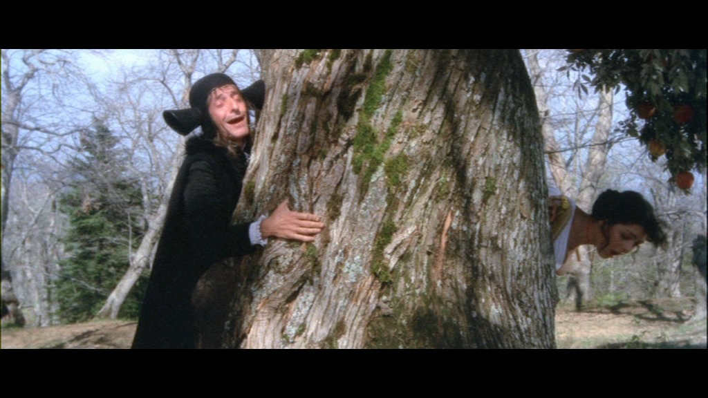 The first official DVD release of this film anywhere in the world comes courtesy of Camera Obscura, complete with a lavish two-disc set that contains a stunning new transfer which marks the title's first presentation ever in its correct aspect ratio. The image quality is very good throughout; colors are extremely saturated and vibrant, often pushing the palette of standard def near its breaking point, while the element itself is extremely clean and obviously well preserved. Audio is presented in both Italian and German with optional (very good) English or German subtitles; the Italian track is definitely more degraded in comparison, particularly when the music swells up on the soundtrack, and considering the film is dubbed either way (it's clear the two leads were speaking English on the set, though to the best of my knowledge, no English dub was ever issued), so you might as well watch it with the more pristine German track unless you're an absolute purist. The first disc also includes a full audio commentary track in German (with optional English subtitles) that, to put it mildly, resembles no other ever recorded. Film writers Christian Kessler and Marcus Stiglegger kick back (apparently right after the William and Kate royal wedding) to discuss literature of the Enlightenment, the role of mondo movies, and the weather outside; it's an incredibly dense and often urbane, hilarious track filled with weird details about the film and its creators, with lots of digressions about the source material, too.