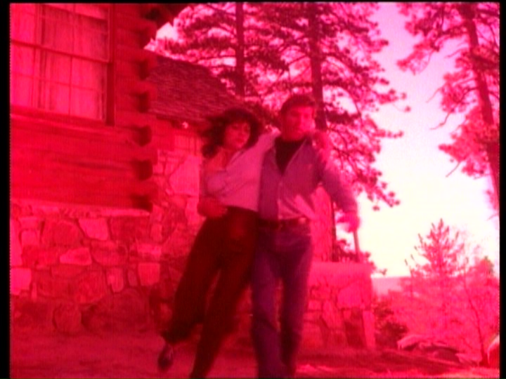 Tucked away as a special feature on the Intervision DVD is another Jones film released two years later, the absolutely surreal Project Nightmare. The setup is basically a sci-fi/horror twist on the Joseph Losey oddity Figures in a Landscape as a couple of guys, Gus (Miller) and Jon (Foster), find themselves stuck out in the middle of the wilderness after a vacation gone wrong has left their campsite in shambles. Something inexplicable is making weird noises around them and terrorizing them, which they try to explain to the only human being in sight, Marcie (Koslo). Bizarre dreams, a force field that won't let them leave, and other baffling elements accumulate until they stumble on a secret government base where the film promptly goes off the deep end with a barrage of hallucinatory, monstrous surprises.