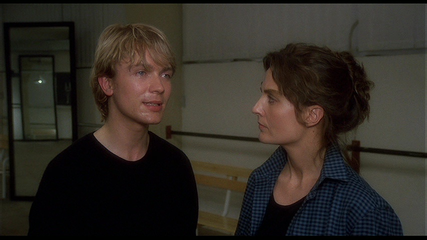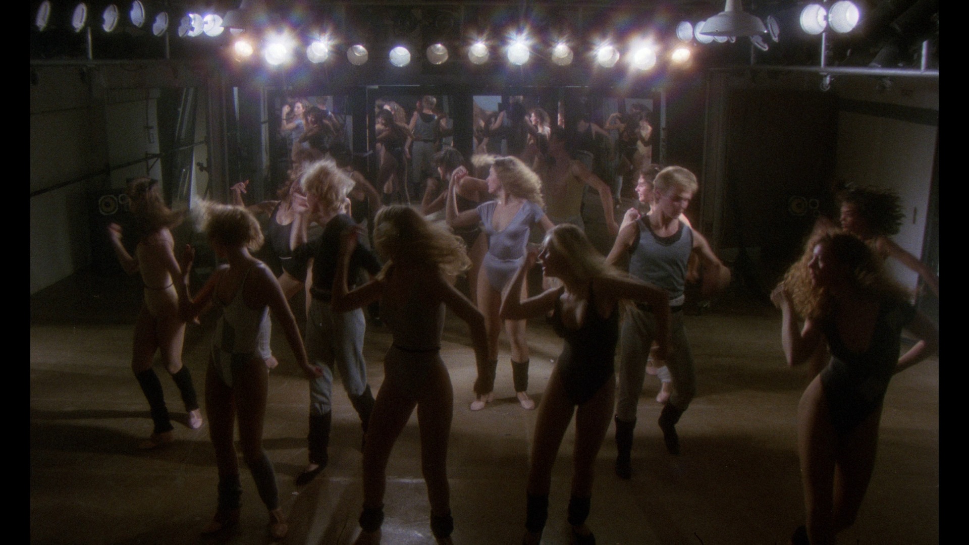 original camera negative with HDR10-compatible Dolby Vision on the former option. The big question here is how the framing would compare, and it's great news all around as it goes with the roomier 1.66:1 framing but adds a very significant amount of visual info compared to all prior versions. The added breathing room helps substantially and looks nicely framed throughout, especially since you can finally see the dancers' feet in several shots that were cropped too high before. The UHD really sparkles with exceptionally deep blacks that make those primary colors pop like crazy, and the slow strobing effects work better than ever here, too. Audio options include the usual DTS-HD MA 2.0 stereo English track and 1.0 Italian mono with newly translated English subtitles, plus the Howarth commentary ported over here.