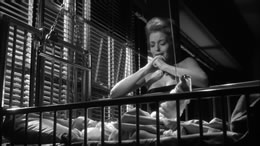 Considering the visual appearance of every DVD edition was nothing to get too excited about, Criterion's 2011 Blu-Ray version had to be an improvement almost by default. Fortunately it turns out to be a huge, huge upgrade in every respect; the film looks absolutely crisp and fresh throughout, with razor-sharp detail even in the farthest recesses of the city street scenes. The darker scenes benefit tremendously as well as the constrast improvements and boost in clarity allow viewers to make out far more of what's going on, especially in the pivotal revelation scene when Kelly comes home before her wedding. You can click on any of the frame grabs here for an uncompressed look, which should be enough to convince any doubters. All the extras here are excellent, especially a new 2007 interview with the still-elegant Towers and Charles Dennis. They cover a hefty amount of ground here, including a funny tie-in to her appearance onstage opposite Yul Brynner in The King and I and the reason behind her bizarre, intentional(?) mispronunciation of Goethe in an early scene with Eisley. A 1983 episode of Britain's South Bank Show devoted to Fuller is also included (with some other studio's film clips excised for copyright reasons) and features considerable input from the late director himself, while the earlier French program Cinéastes de notre temps (mostly in English with printed French subs) and the much later Cinéma Cinémas feature Fuller addressing his European following, which is still far more fervent than the one in America. The trailer is also included along with a very well-written set of liner notes by Robert Polito (augmented with passages from Fuller's autobiography); like their companion release of Shock Corridor, it also features striking, colorful cover art that should win some kind of award. Considering this film was ignored and considered utter trash before the home video era (at least in America), it's remarkable to see how far it's climbed in popular esteem. Thankfully, Criterion's marvelous HD rendering should only propel it higher.