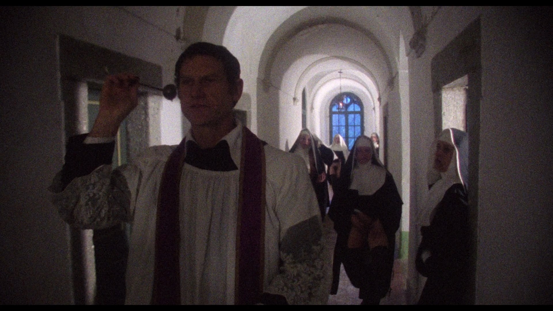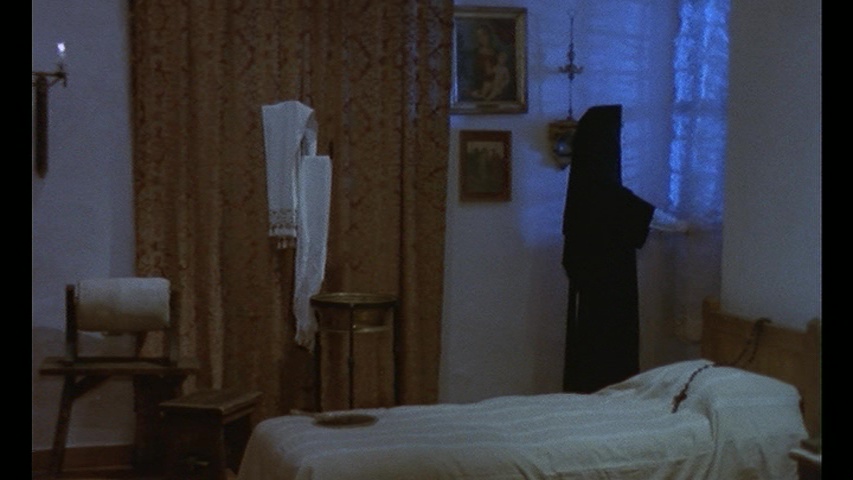 some of them were looped after the fact. The extras begin with "Down the Well" (11m16s) in which Brochard remembers the importance of 1973 in her life and career, her earlier role in The Nun and the Devil, the challenging nature of her final scene, and the main reason she took the role. Then it's Giorgi's turn in "A Nun's Story" (23m28s), offering a fascinating account of how she made a pivotal life choice that turned her to acting, what drew her to the role in this film, the acting tips she learned on the fly making this film, the traits she shares in common with her character, and a very funny story about her big love scene with Falsi. Finally in "Within a Cloister" (16m1s), camera operator Daniele Nannuzzi shares his memories of shooting the more memorable scenes including a quasi-crucifixion, his pleasant surprise with Giorgi's performance and the joys of lighting her, his experience working for his father Armando Nannuzzi as director of photography, and his thoughts on his "genre" director.