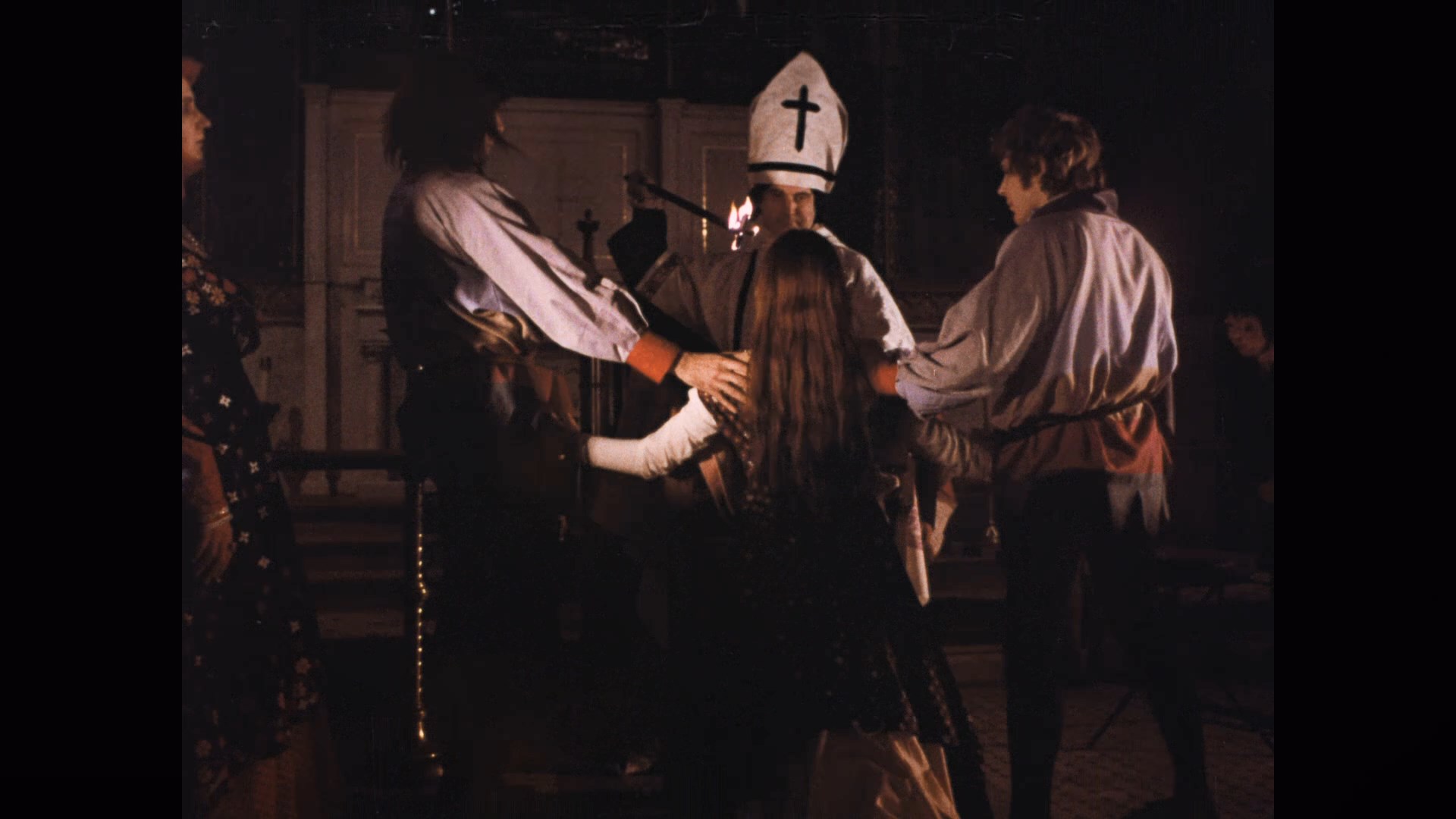 Released under Milligan's own short-lived company Nova International Productions (which allowed it to play some engagements paired up as a co-feature to The Body Beneath), Guru has been treated like a quasi-public domain title for a long time leading to a variety of video editions from companies like Mill Creek and Sinister Cinema, all pulled from pretty rough video sources. The best option for many years was the 2002 DVD from Retromedia, though that was outclassed by wide margin when a theatrical print with very good color was sourced for a new HD scan that ran for a while as a digital offering from Vinegar Syndrome. That same scan appears to be the same base as what's used for the Severin release, which is offered in both 1.33:1 and matted 1.85:1 options, the latter presumably to replicate how it was projected at the time. That said, the 1.33:1 is much easier on the eyes with more natural compositions and, for some reason, better color timing with richer reds and browns in particular. The earlier digital version evidently used some cleanup tools to fix the prevalent green scratches that were present in the source, while the Blu-ray keeps things as is with what appears to be an accurate scan of the print, warts and all. In addition to the theatrical trailer (presented here in HD in far better quality than we've ever had before), the disc also comes with "Remembering Andy Milligan" (12m49s), an archival SD interview with set photographer Tom Vozza who shares his memories of being around Andy ("a crazed rabbit") during his later years in Los Angeles. The film itself also comes with a Crocker audio commentary touching on the uphill battle of Milligan shooting in 35mm and the story behind Nova.