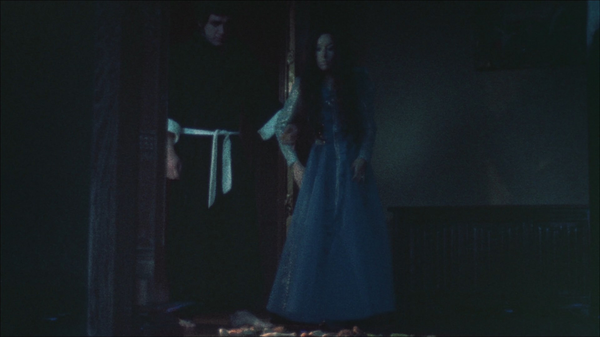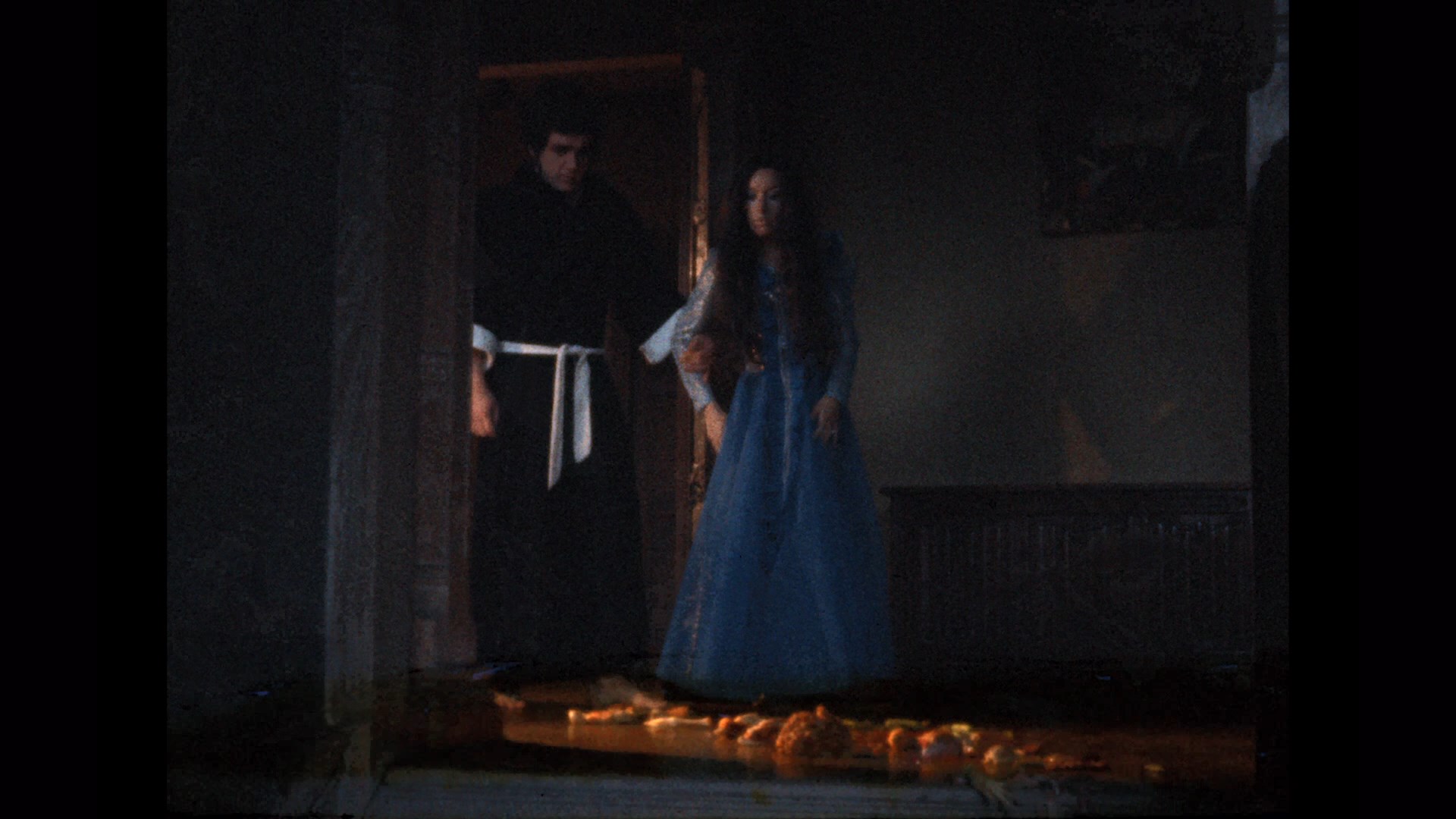 The other feature on this disc is another film Milligan shot in England the same year, The Body Beneath. This Gothic vampire yarn has long been regarded as one of the best of his horror output, especially after Something Weird issued it on DVD in 2001 (one of their earliest titles out of the gate) in a drastically improved transfer for the time off of the original 16mm elements rather than the 35mm dupes used for most Milligan transfers. The Blu-ray was spectacular when it first came out and still looks great; the original 16mm negative and a 35mm print for audio and reference purposes were used with some crucial missing footage slotted back in (such as a peculiar foot-centric sex scene deleted from release prints), bringing the running time back up to its longest possible iteration. The hailstone-sized grain blobs that terrorized his work for many theater audiences are exchanged here for a much more solid, refined appearance, with beautifully modulated, natural grain levels and sometimes psychedelic colors, especially the tripped-out climax. The opening credits sequence here also looks more solid than the Something Weird edition, which had to pull that segment from a 35mm print.