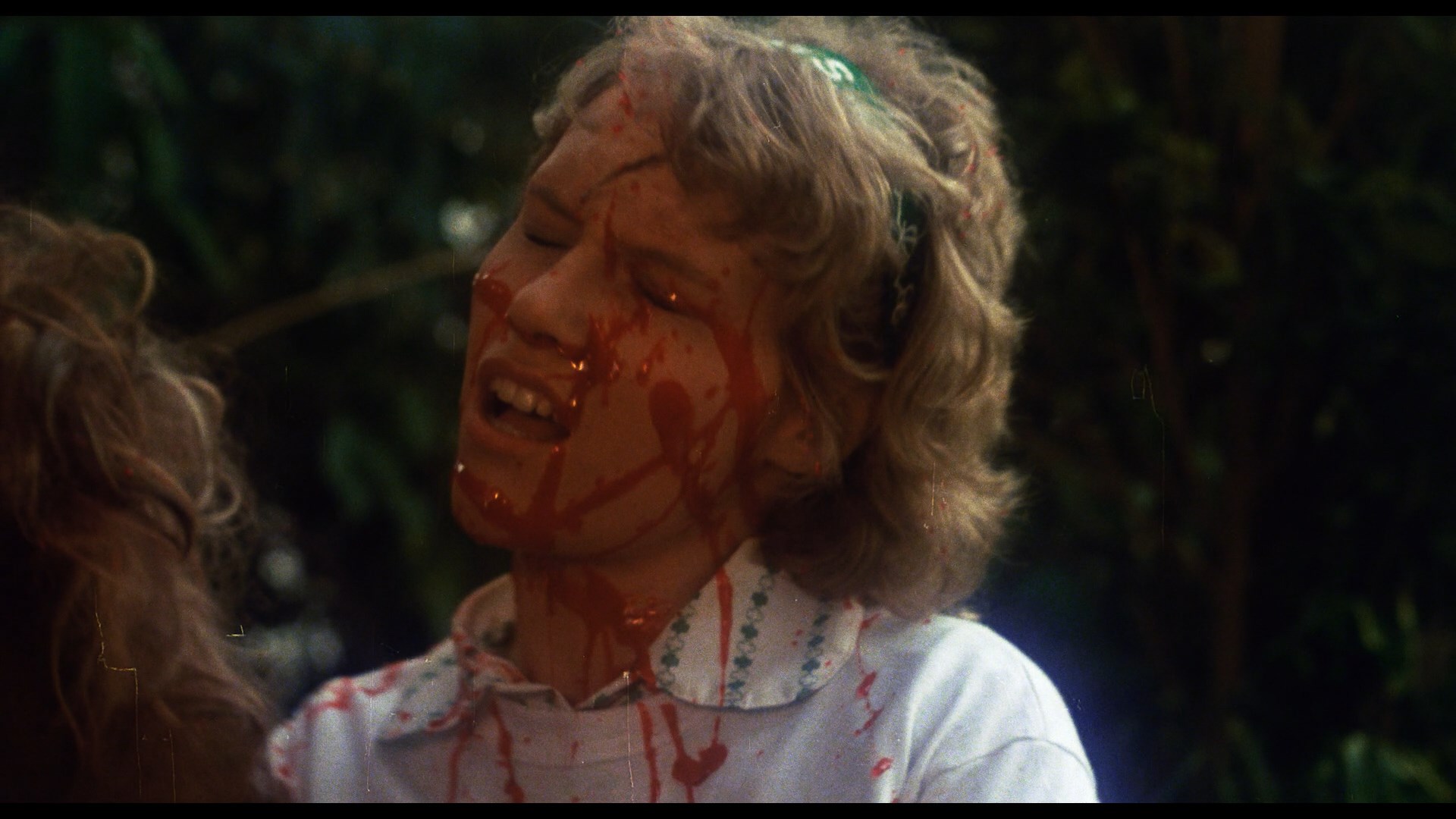 Little Green Kid Outta Waco, Texas" (22m12s) with producer Jim L. Ball starting off on a high note talking about the more intimate mutilation moments in the film before telling the story of his life leading to this film from his childhood listening to 45 RPM records that ignited his interest in the creation of recording and media distribution, with an awakening to the films of Maria Montez pushing him to get into movies where he worked for AIP. He also chats about making a 16mm quickie 1964 horror movie with other USC film students called Fraternity of Horror, which was shot by Night of the Demon cinematographer John Quick. Of course he talks quite about making the main feature at hand, including the story about getting composer Dennis McCarthy who went on to score tons of episodes in the Star Trek series starting with Star Trek: The Next Generation. He also goes into the reshooting of some pivotal gore scenes to punch up the film, with wigs, leotards, and condoms coming in awfully handy. Don't miss this one. Then in "The Demon Made Me Do It" (26m28s), director James C. Wasson recalls making the film in his original version (which wasn't gory at all) and seems a bit mystified by it becoming embroiled in the video nasty scandal. His own story is quite colorful as well, starting off with his early days as a professional singer including gigs around Las Vegas which led to his branching out into other aspects of show business like his first film, an arty all-male 1975 film The Dreamer he directed as "J. Clinton West" (which jolts him when it's brought up). That put him in contact with personnel who would work on Demon, and he's full of stories including his own '60s Bigfoot musical