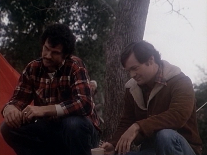 for themselves. Along the way they're regaled with other brutal Bigfoot encounters involving two overaged Girl Scouts, a horny couple in a van, a guy in a sleeping bag (shades of Prophecy), and most notorious of all, a biker whose pee stop by the side of the road takes a nasty turn. Eventually they reach a secluded cabin where a traumatized woman (Graham) reveals the horrible truth including her own twisted family history.