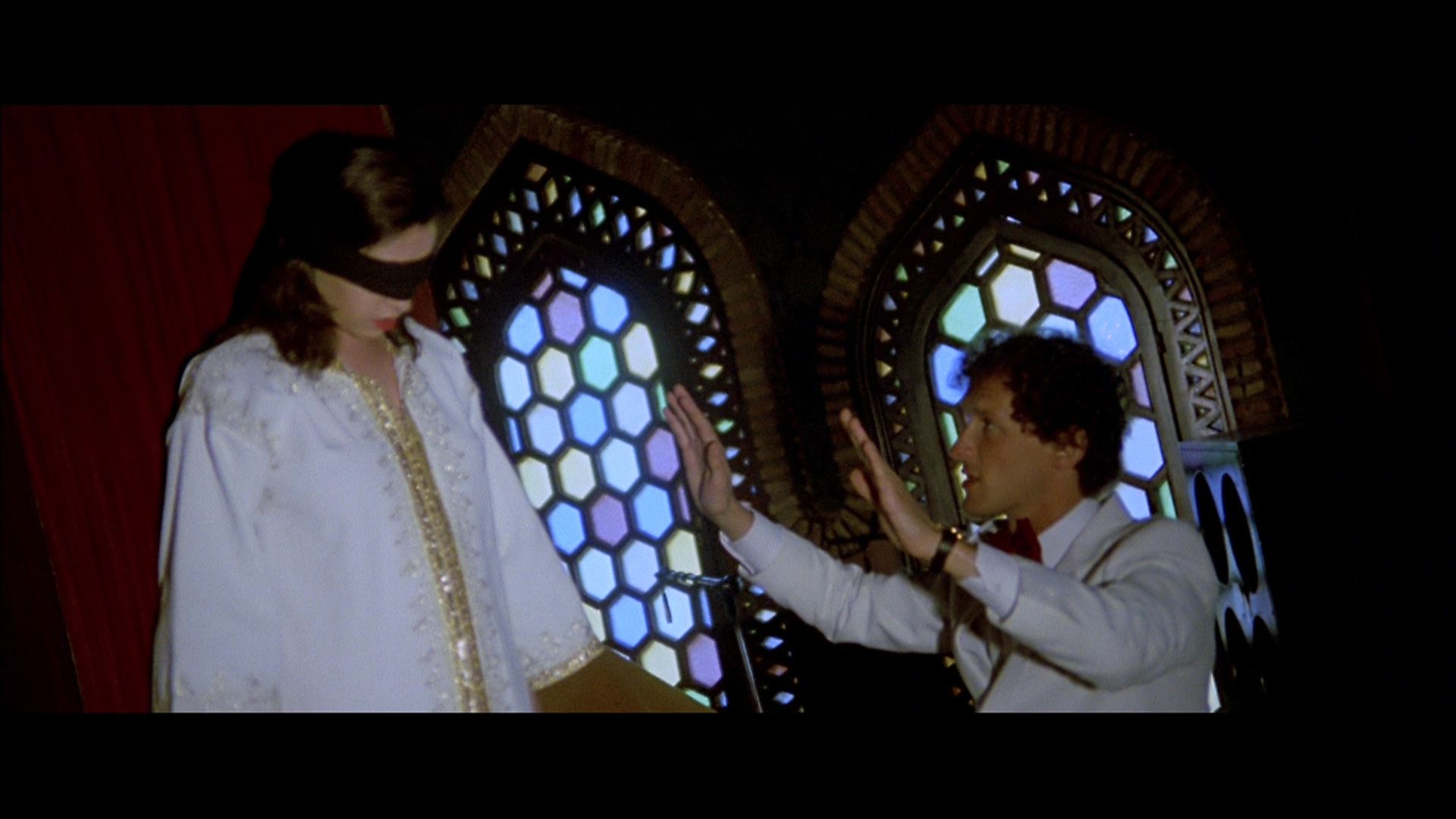 Never released before in an English-friendly version (and only on DVD previously in Spain), Night Has a Thousand Desires (whose title might work better as Night Has a Thousand Sighs to preserve the pun) looks great on Blu-ray from Mondo Macabro with a fresh transfer off of the original camera negative. It's a very dark film (literally) at times, and this captures that quality well with its often intense color schemes popping out nicely. It's definitely enough to make you hope some more of Franco's films from the period get the similar treatment, and the Spanish mono audio with optional English subtitles also sounds great (featuring a mixture of older and new music by Daniel J. White, riffing in particular on Female Vampire). Of course it wouldn't be a proper Franco release these days without some sort of contribution from Stephen Thrower, author of Murderous Passions: The Delirious Cinema of Jesus Franco, in which he presents an eloquent 33-minute breakdown of the film both for its place in Franco's life (with his collaborations with Romay taking a romantic turn shortly before this) and its place as a key but lesser known entry in his filmography, using the Lorna and Irina characters in fascinating new ways. Also included is the original 24-minute Jess Franco episode of the great Eurotika! UK TV series, with the director himself and other participants (Nigel Wingrove, Peter Blumenstock, etc.) offering an intro to the challenging but immense rewards of his sprawling filmography. The usual Mondo Macabro promo reel closes out this essential release for any Franco fanatic.